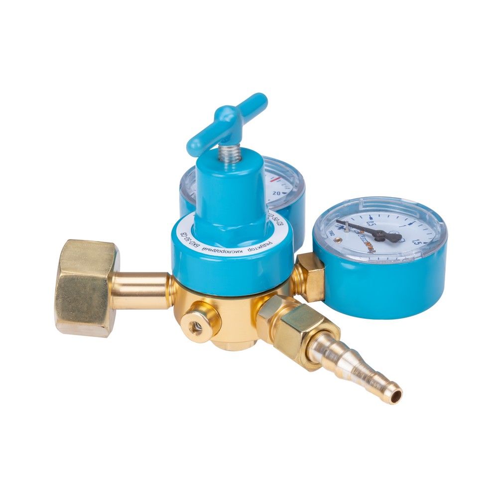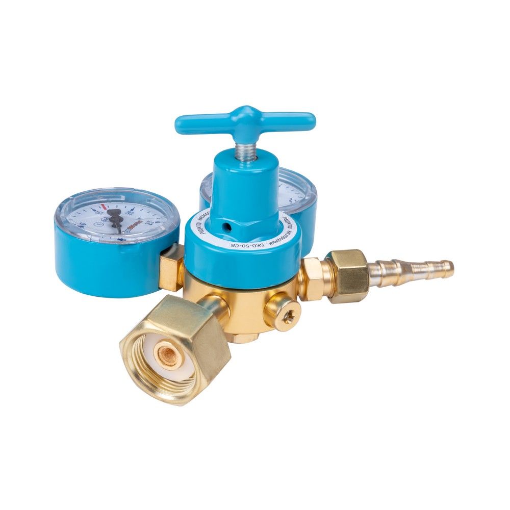 Газовый редуктор БКО-50-СВ используется для понижения и поддержания заданного давления при подаче газа из баллона. Данная модель поддерживает работу с химическим соединением кислорода. Кислородный газовый редуктор оснащен двумя манометрами для контроля входного и выходного давления. Вентиль обеспечивает удобную регулировку подачи газа до рабочего давления. Кислородный редуктор поддерживает заданное давление при работах с газосварочным оборудованием, что обеспечивает безопасность и комфорт.ВНЕШНИЕ РЕГУЛИРОВКИ: Газовый редуктор имеет вентиль регулировки давления. Для качественного выполнения газосварочных работ необходимо контролировать давление, поступающее из баллона. Вентиль снижает или понижает поступающее на выходе давление - можно настроить необходимое рабочее давление на выходе и проконтролировать процесс с помощью манометров.ВСТРОЕННЫЙ МАНОМЕТР: Газовый редуктор с двумя манометрами позволяет контролировать давление. Первый манометр показывает повышенное давление на входе из баллона, второй контролирует пониженное рабочее давление на выходе.БЕЗОПАСНОСТЬ РАБОЧЕГО ПРОЦЕССА: Газовый редуктор выполнен из сплава латуни. Данный вид сплава предотвращает появление искр при закреплении редуктора на газовом баллоне. Модель надежно крепится на баллон с помощью накидной гайки, и корпус изделия не пропускает газ во внешнюю среду. Процесс работы с газовым оборудованием становится проще и безопаснее.СТАБИЛИЗАЦИЯ СВАРОЧНОГО ПРОЦЕССА: Использование газового редуктора в газосварочных работах стабилизирует процесс подачи газа. Полный контроль над уровнем давления на входе позволяет отслеживать уровень заполненности баллона, стабильное давление подачи газа на выходе поддерживает рабочее давление при газосварке.ПРЕИМУЩЕСТВА:Удобство в использованииРегулировка подачи газаКонтроль давления