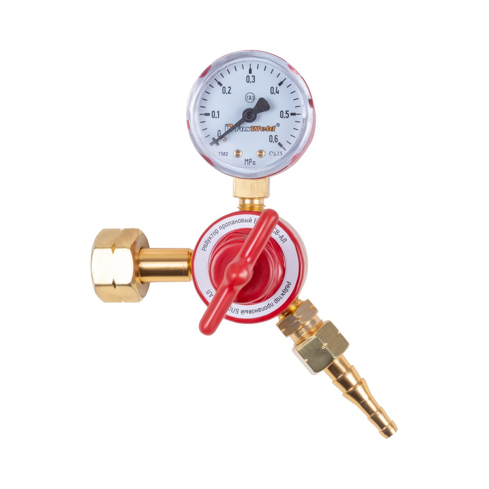 Пропановый газовый редуктор БПО-5-СВ-АЛ производства Foxweld используется для понижения и регулирования давления газа, выходящего из баллона. Данная модель предназначена для работы с химическим соединением пропана. Вентиль регулировки давления обеспечивает непрерывную подачу газа из баллона в необходимом количестве, а манометр показывает выходящее давление. Газосварочный процесс с пропановым редуктором БПО-5-СВ-АЛ становится удобным и безопасным.БЕЗОПАСНОСТЬ РАБОЧЕГО ПРОЦЕССА: Модель надежно крепится на баллон с помощью накидной гайки, и корпус изделия не пропускает газ во внешнюю среду. Процесс работы с газовым оборудованием становится проще и безопаснее.ВНЕШНИЕ РЕГУЛИРОВКИ: Газовый редуктор имеет вентиль регулировки давления. Для качественного выполнения газосварочных работ необходимо контролировать давление, поступающее из баллона. Вентиль снижает или понижает поступающее на выходе давление - можно настроить необходимое рабочее давление на выходе и проконтролировать процесс с помощью манометров.ВСТРОЕННЫЙ МАНОМЕТР: Газовый редуктор с манометром позволяет контролировать давление. Манометр показывает пониженное рабочее давление на выходе, делая газосварочный процесс стабильным.СТАБИЛИЗАЦИЯ СВАРОЧНОГО ПРОЦЕССА: Использование газового редуктора в газосварочных работах стабилизирует процесс подачи газа. Полный контроль над уровнем давления на входе позволяет отслеживать уровень заполненности баллона, стабильное давление подачи газа на выходе поддерживает рабочее давление при газосварке.ПРЕИМУЩЕСТВА:Удобство в использованииРегулировка подачи газаКонтроль давления