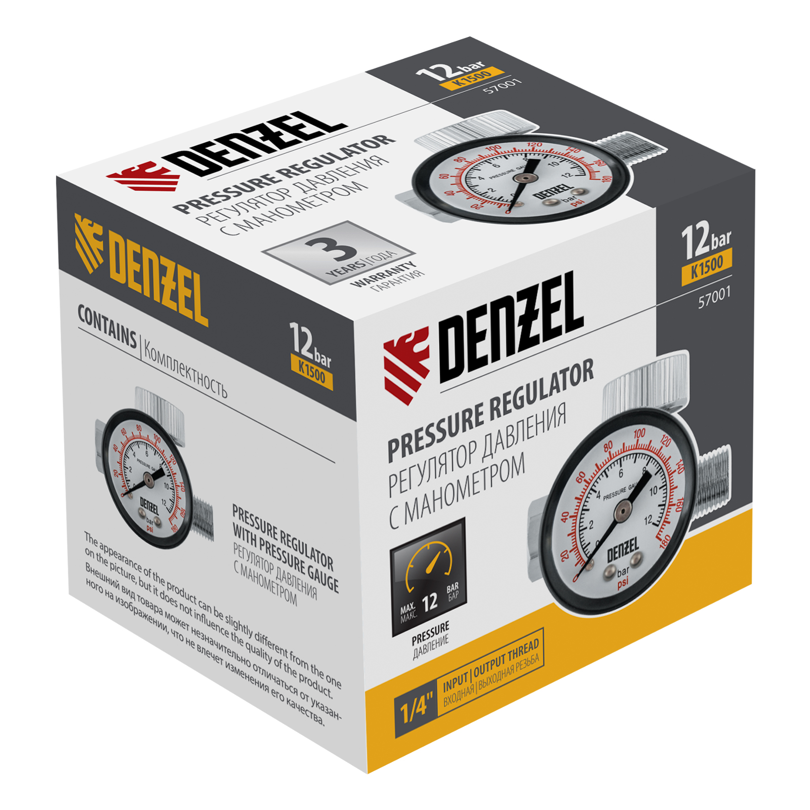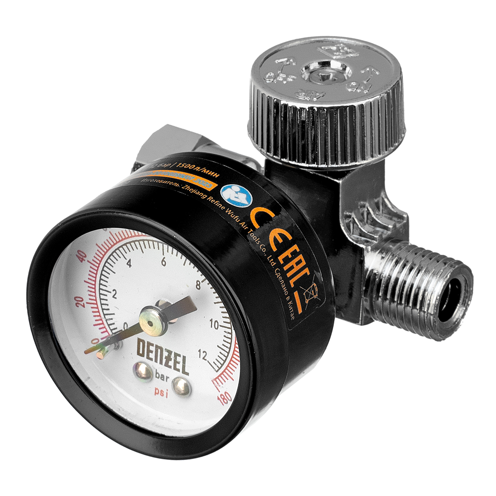 Регулятор давления с манометром для краскораспылителя K1500, 12 бар, 1/4" Denzel в Челябинске