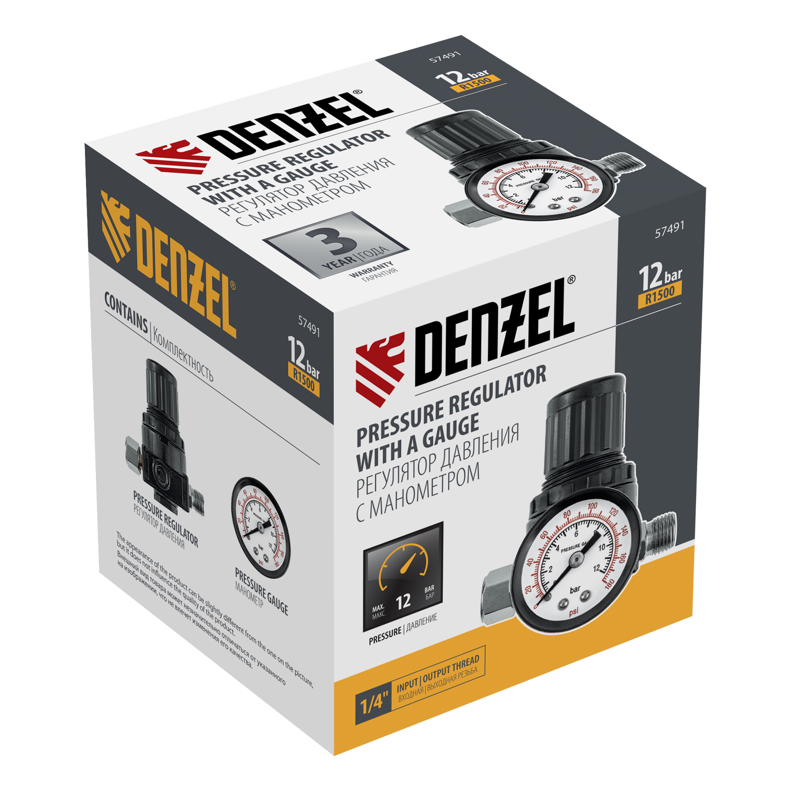 Регулятор давления с манометром R1500, 12 бар, 1/4" Denzel в Челябинске