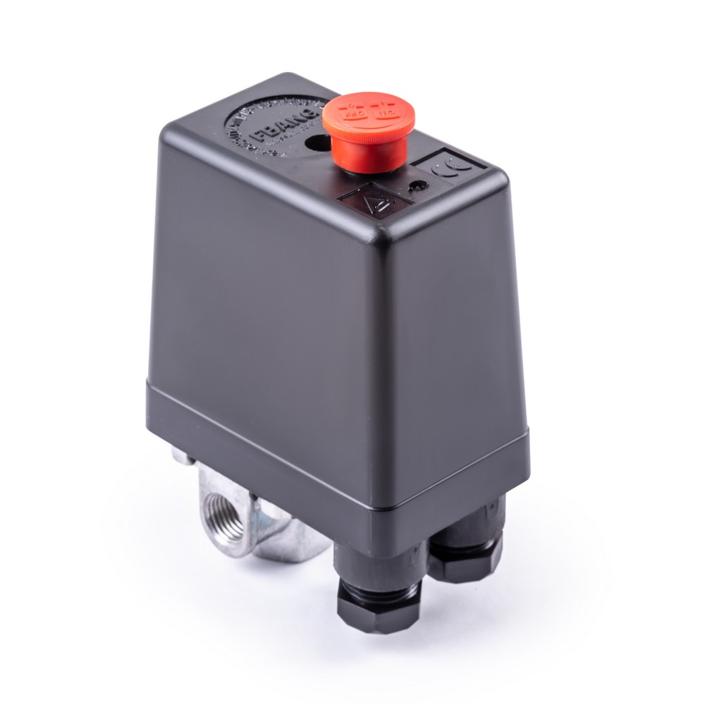 Реле давления одноступенчатое AERO 1/4" служит для автоматического поддержания давления в ресивере компрессора в диапазоне 6-8 бар. Реле имеет 4 входа-выхода с внутренней резьбой 1/4″. Реле давления предназначено для контроля перепадов давления в пневмосистеме компрессора. Их главным элементом является пружина, которая изменяет свою жесткость в зависимости от значения этого параметра. Реле давления или прессостаты защищают компрессор от преждевременного износа отключая его электродвигатель при достижении максимального давления воздуха в системе и повторно включая его при падении давления ниже заданного значения. Принцип работы реле давления воздуха для компрессора прост и основывается на зависимости силы сжатия пружины от давления поступающего газа, который далее попадает на мембрану. При изменении давления пружина приходит в действие, а по достижении наибольшего показателя давления цепь электропитания разъединяется.  При понижении давления газа пружина замыкает электрическую цепь, компрессор включается и начинает подавать газ в систему. Значения давления, при которых реле включается и выключается, устанавливаются производителем оборудования.