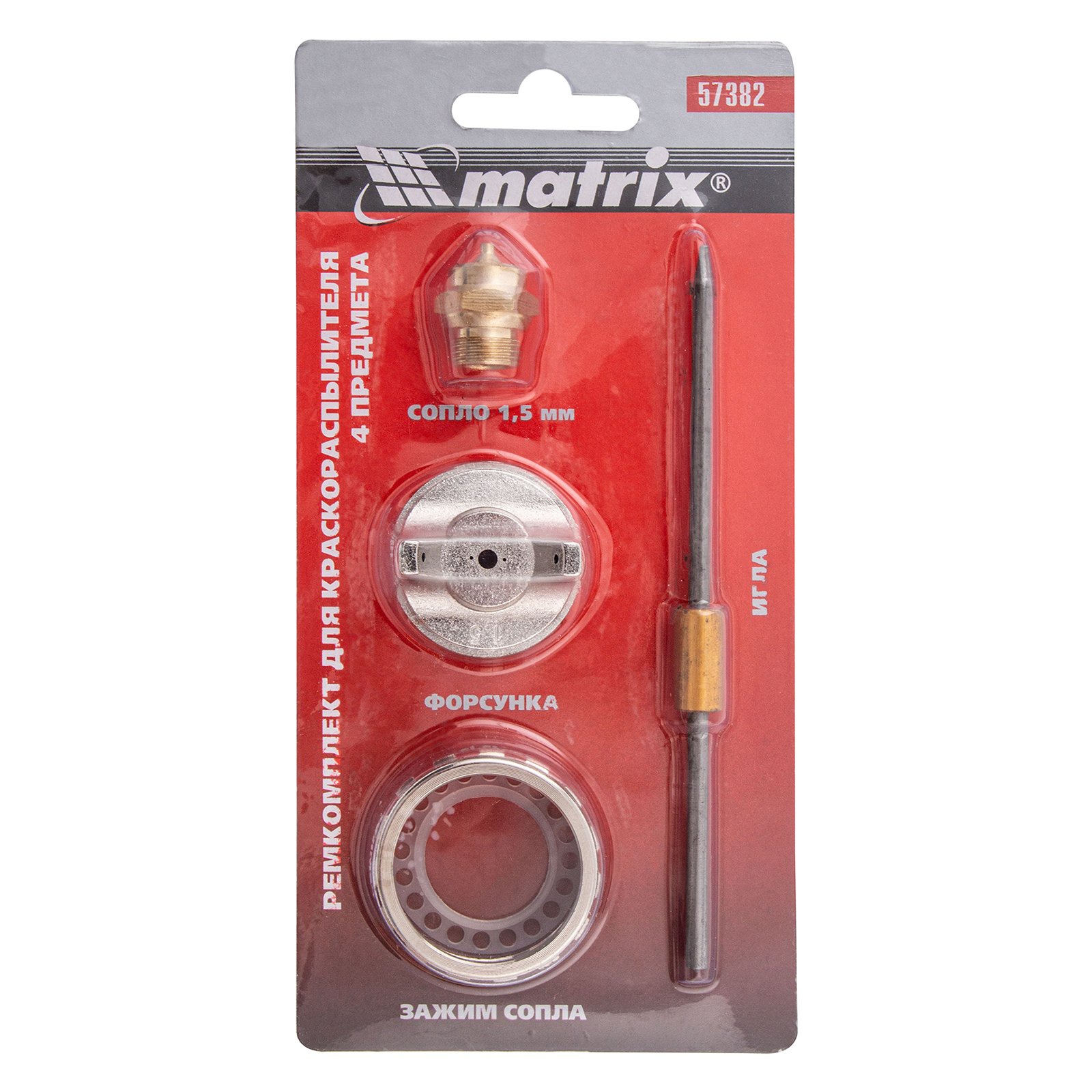 Ремкомплект для краскораспылителя 4 предмета : сопло 1.5 мм + игла + форсунка + зажим сопло Matrix в Челябинске