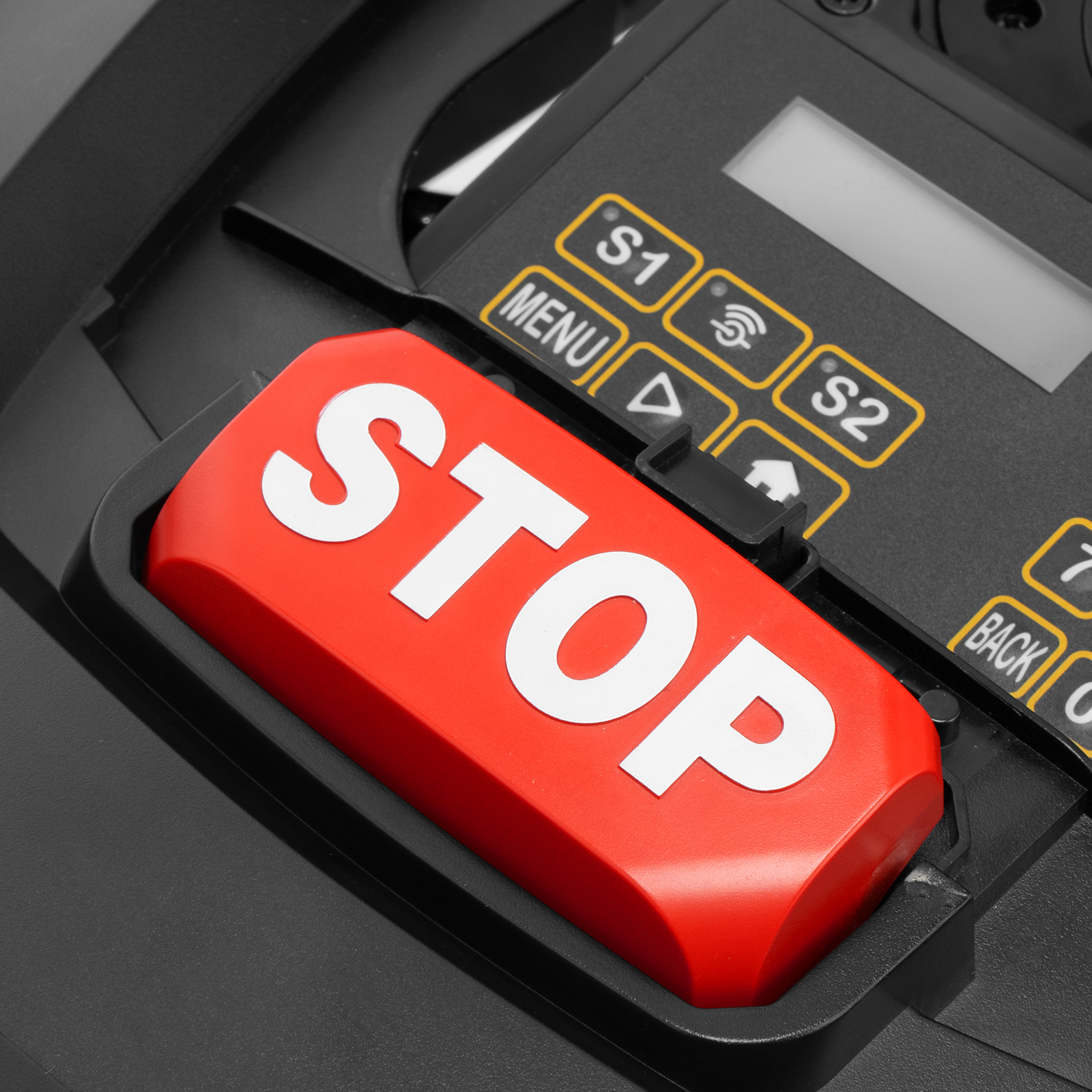 датчик столкновения_управление через приложение_цифровой дисплей_легкий старт_защита от кражи_датчик дождя_датчик наклона и подъема_датчик опрокидования_ультразвуковой датчик_опознавание границ по проводу_работа по расписанию |