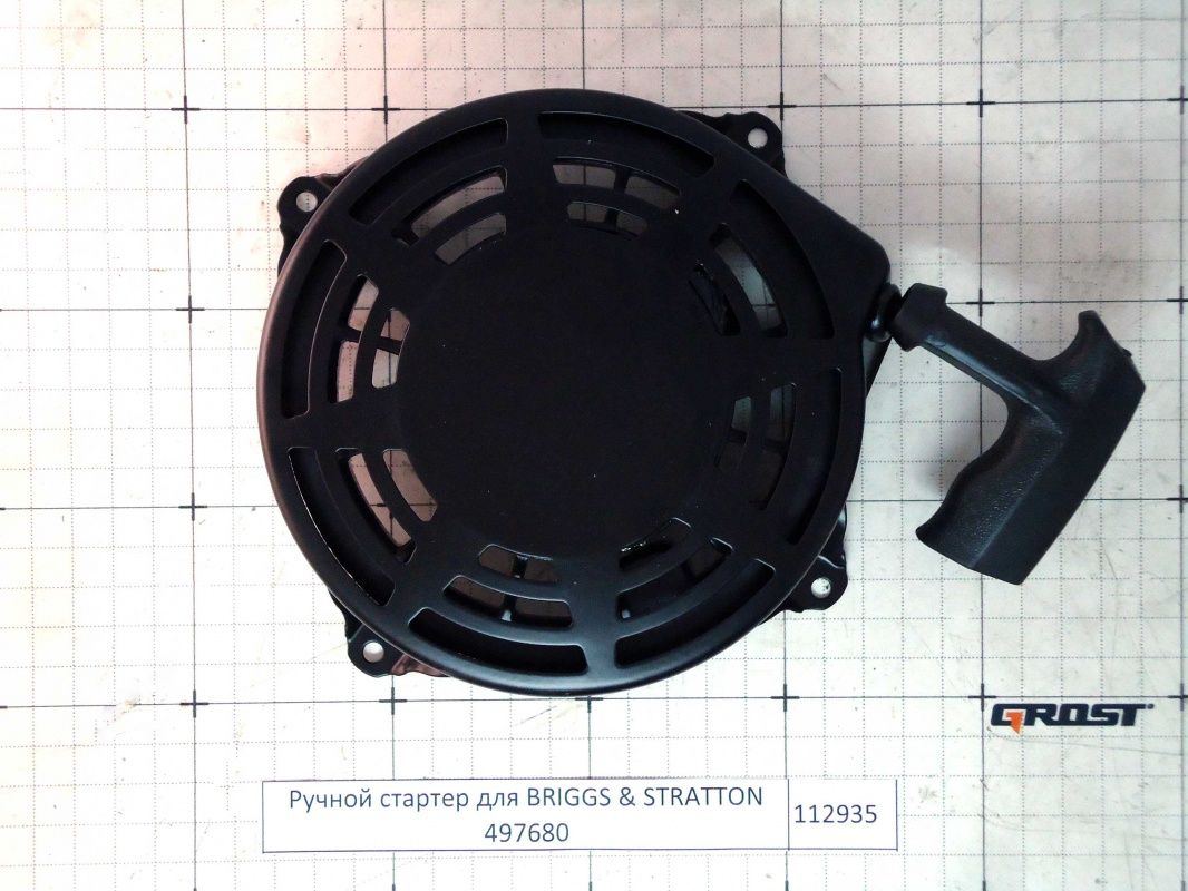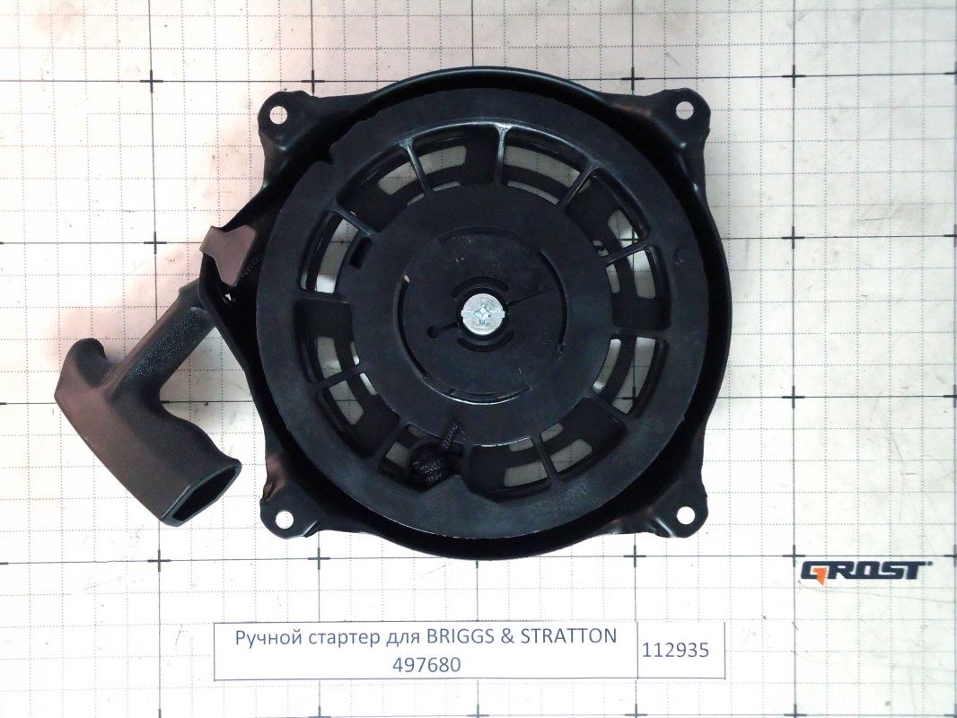 Стартер для ручного запуска бензинового двигателя BRIGGS & STRATTON 497680 Механизм запуска бензинового двигателя. Внешний диаметр 170 мм, крепежные отверстия 4 мм, межцентровые равстояния между крепежными отверстиями по окружности 115 мм (противоположных 162 мм)