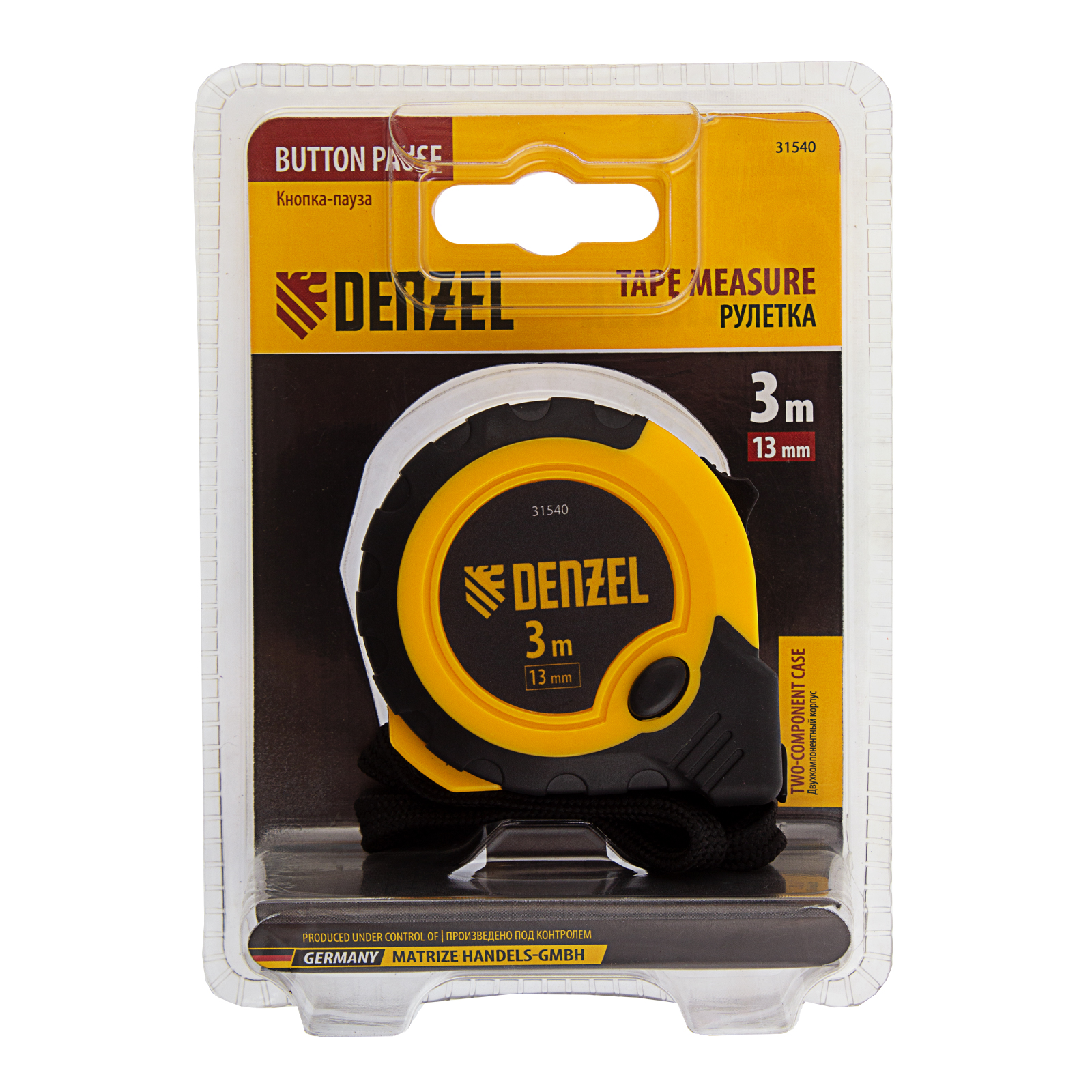 Рулетка 3м х 13мм, двухкомп. корпус, кнопка-пауза Denzel в Челябинске