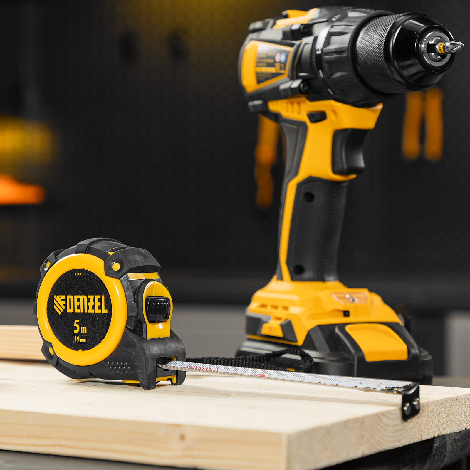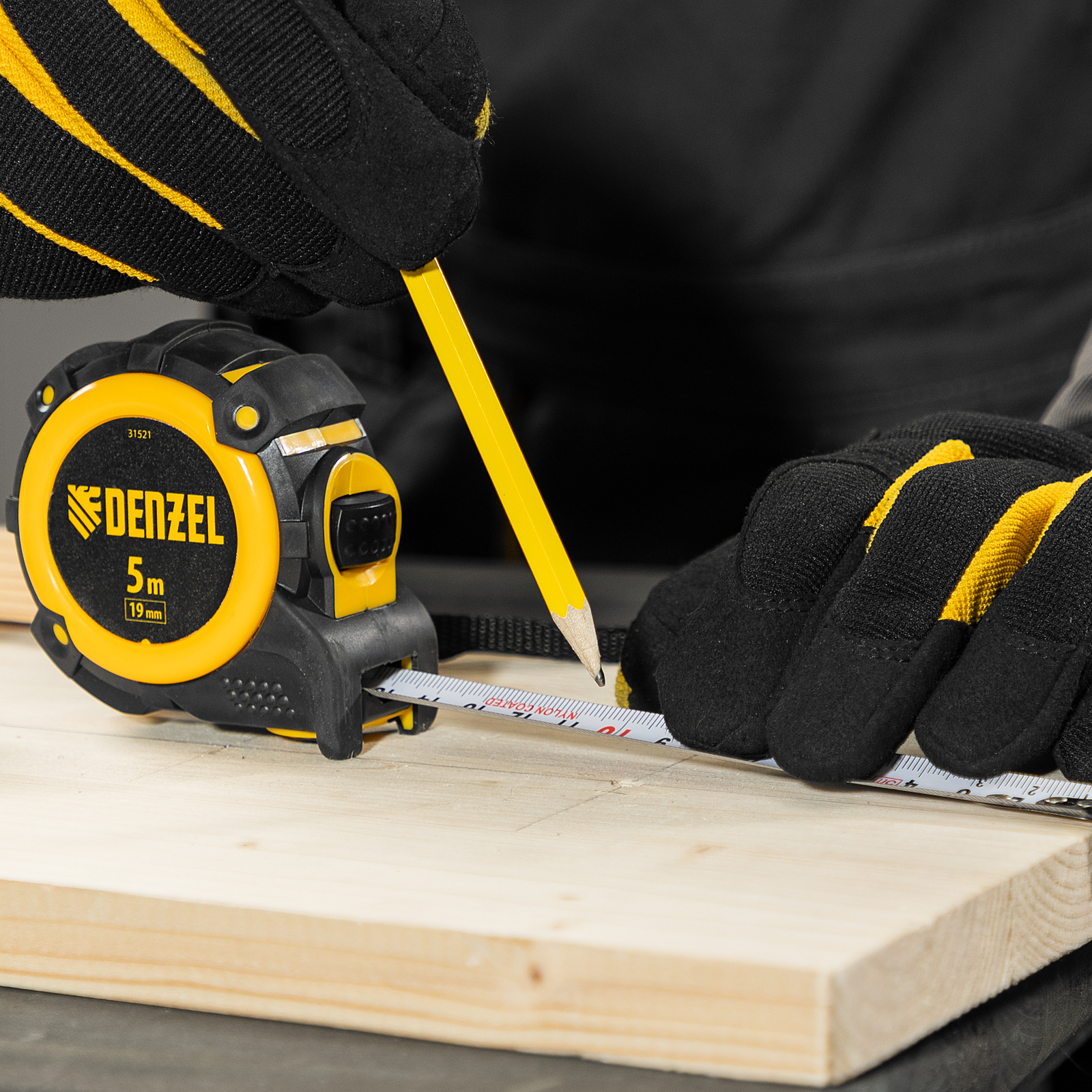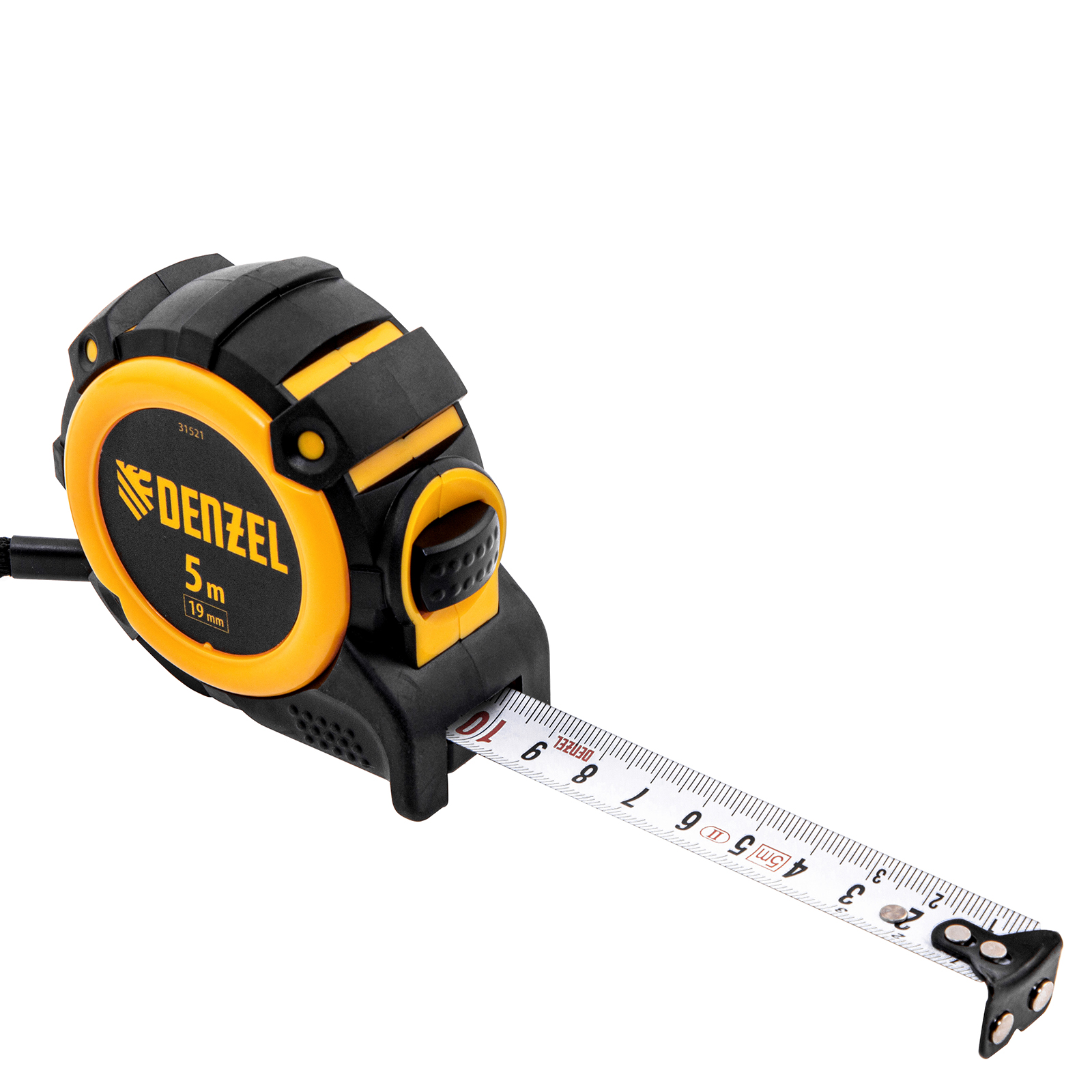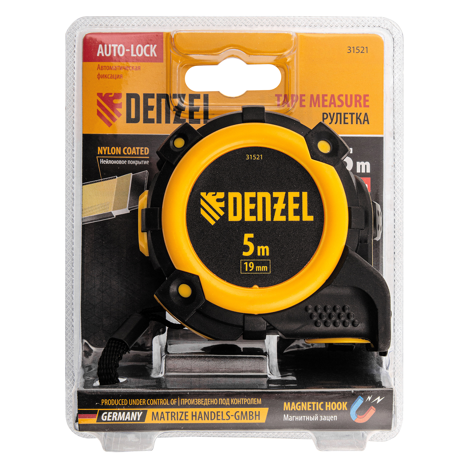 Рулетка 5м х 19мм, автоматич. фиксац., нейлон. покрытие, магнит. зацеп, двухстор. разметка Denzel в Челябинске