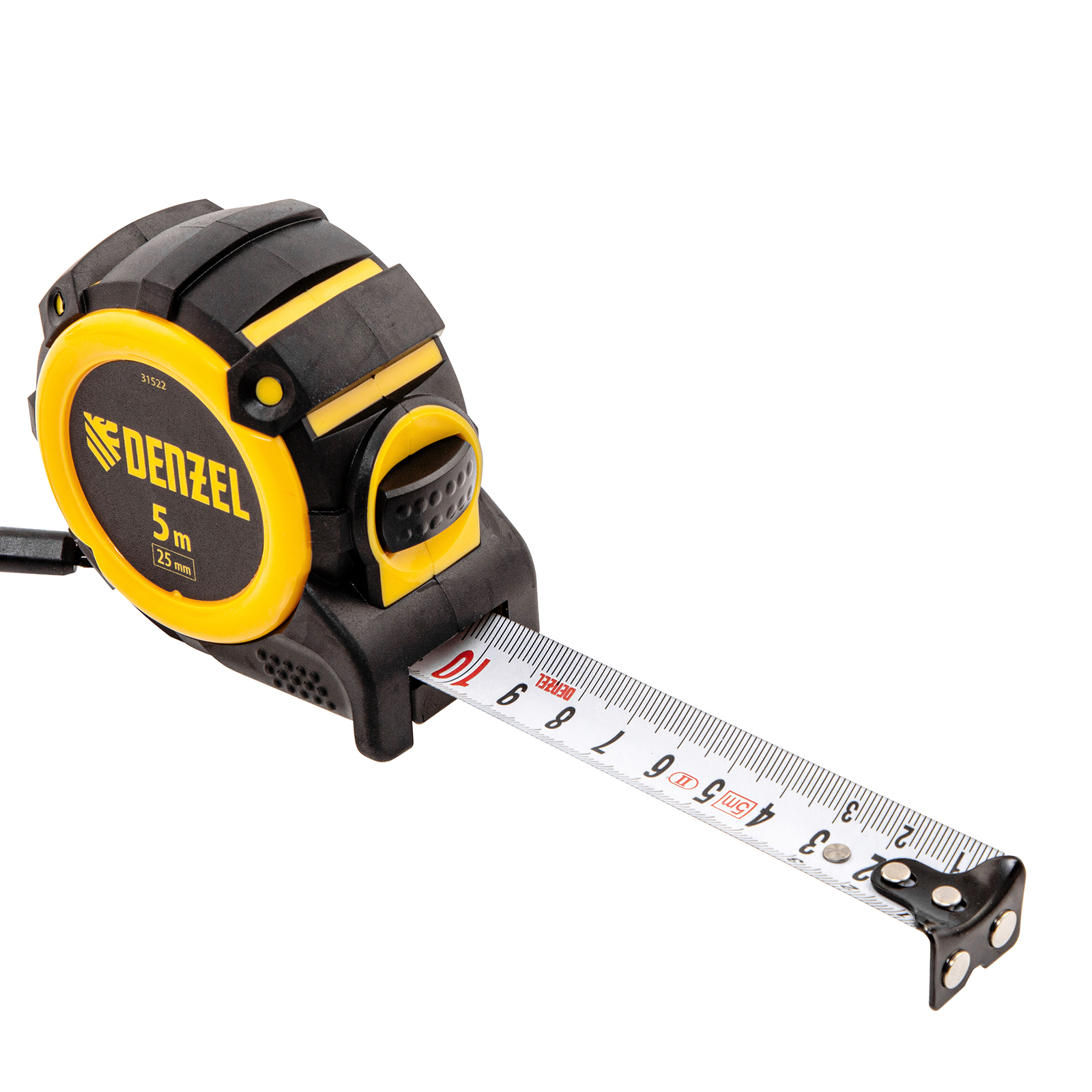 Рулетка 5м х 25мм, автоматич. фиксац., нейлон. покрытие, магнит. зацеп, двухстор. разметка Denzel в Челябинске