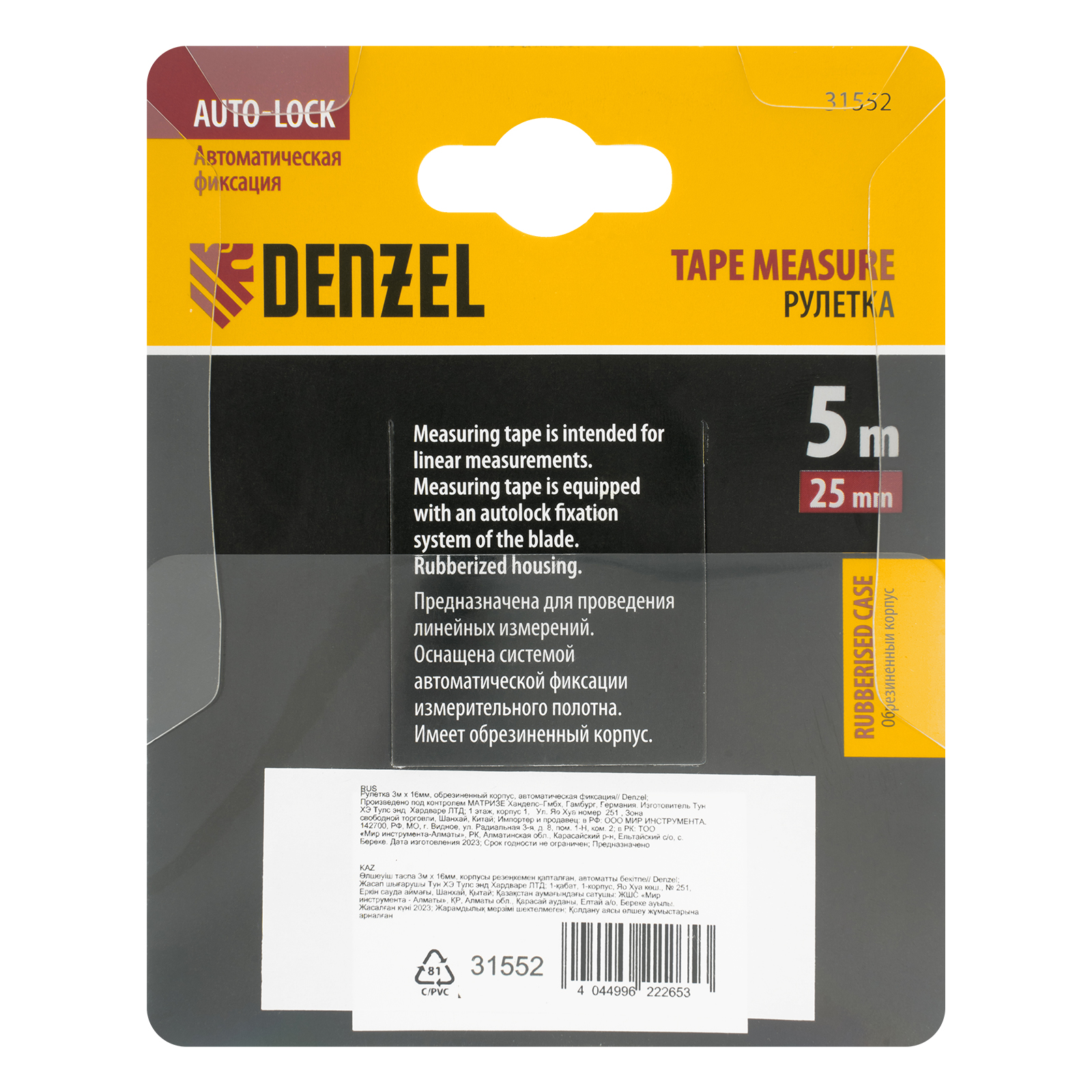 Рулетка 5м х 25мм, обрезиненный корпус, автоматическая фиксация Denzel в Челябинске