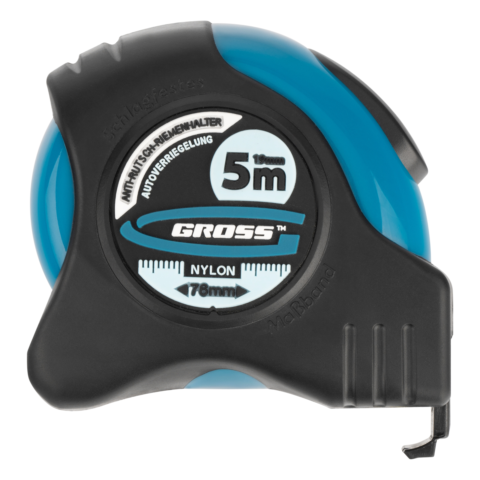 Рулетка "Schlagfest",5 м x 19 мм,магнитный обрезиненный зацеп,двусторонняя шкала,Нейлоновое покрытие,автоматическая фиксация Gross в Челябинске