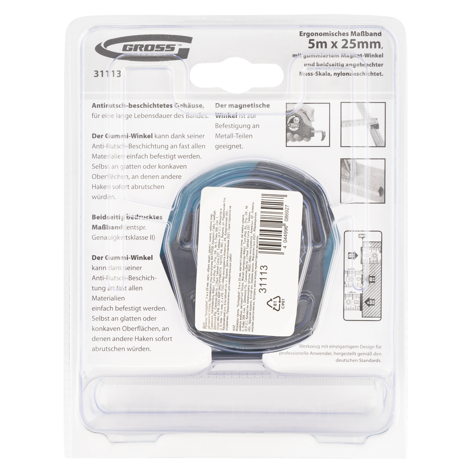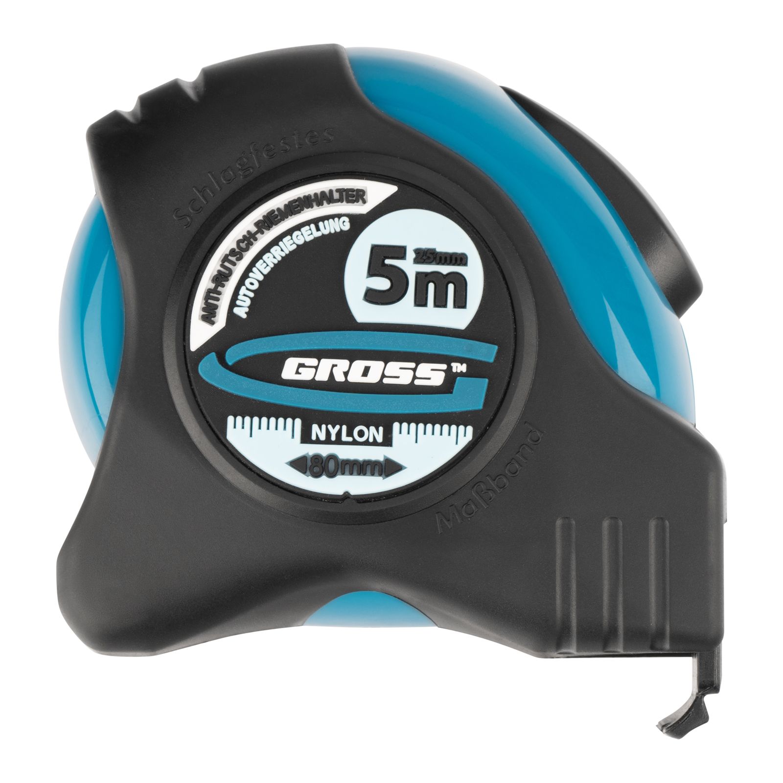 Рулетка "Schlagfest",5 м x 25 мм,магнитный обрезиненный зацеп,двусторонняя шкала,Нейлоновое покрытие,автоматическая фиксация Gross в Челябинске