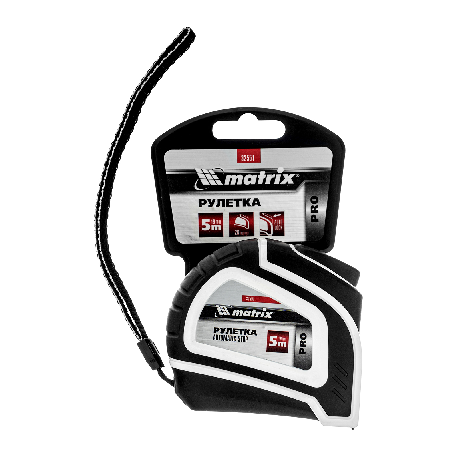 Рулетка Autostop,5 м х 19 мм,двухкомпонентный корпус,автоматическая фиксация,Pro Matrix в Челябинске