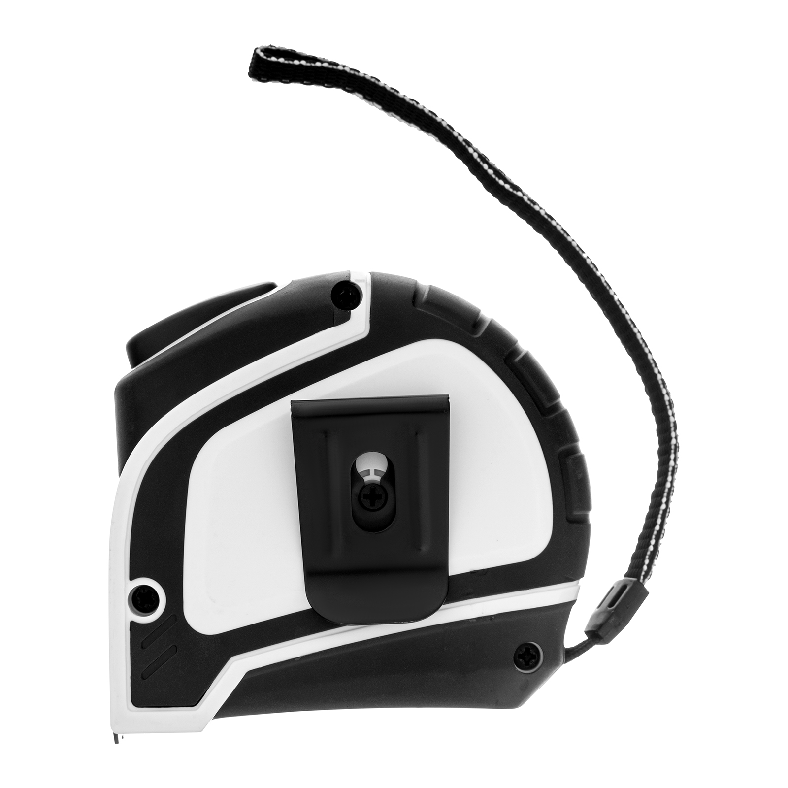 - Комфортная транспортировка — нейлоновый ремешок позволяет повесить рулетку на запястье, при помощи зажима на корпусе инструмент можно закрепить на поясном ремне.