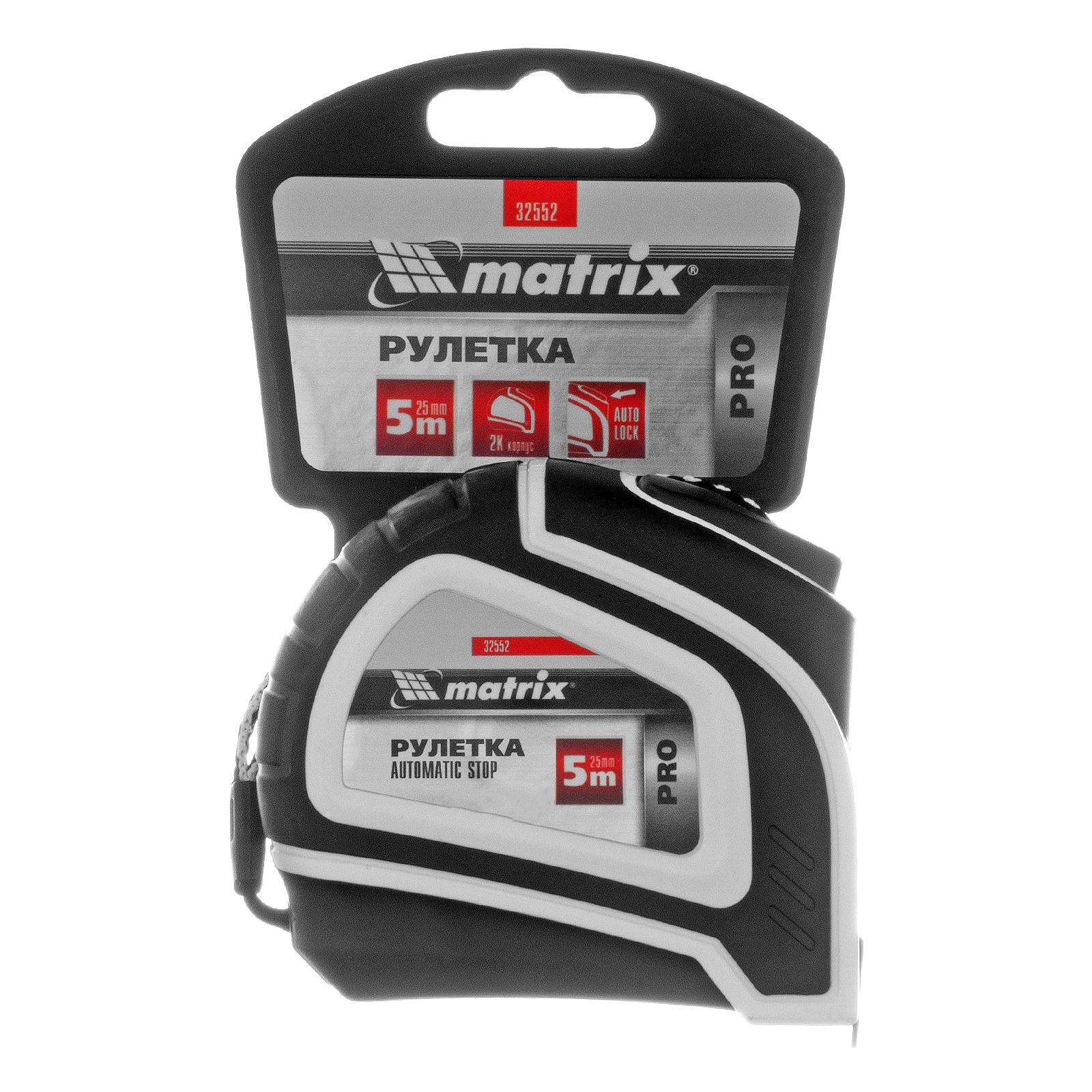 Рулетка Autostop,5 м х 25 мм,двухкомпонентный корпус,автоматическая фиксация,Pro Matrix в Челябинске