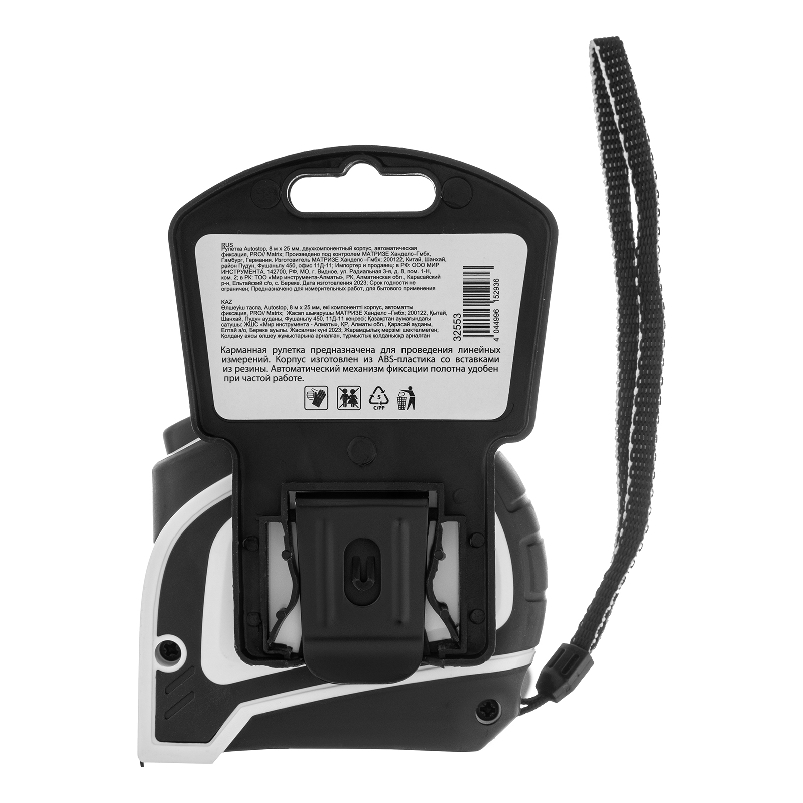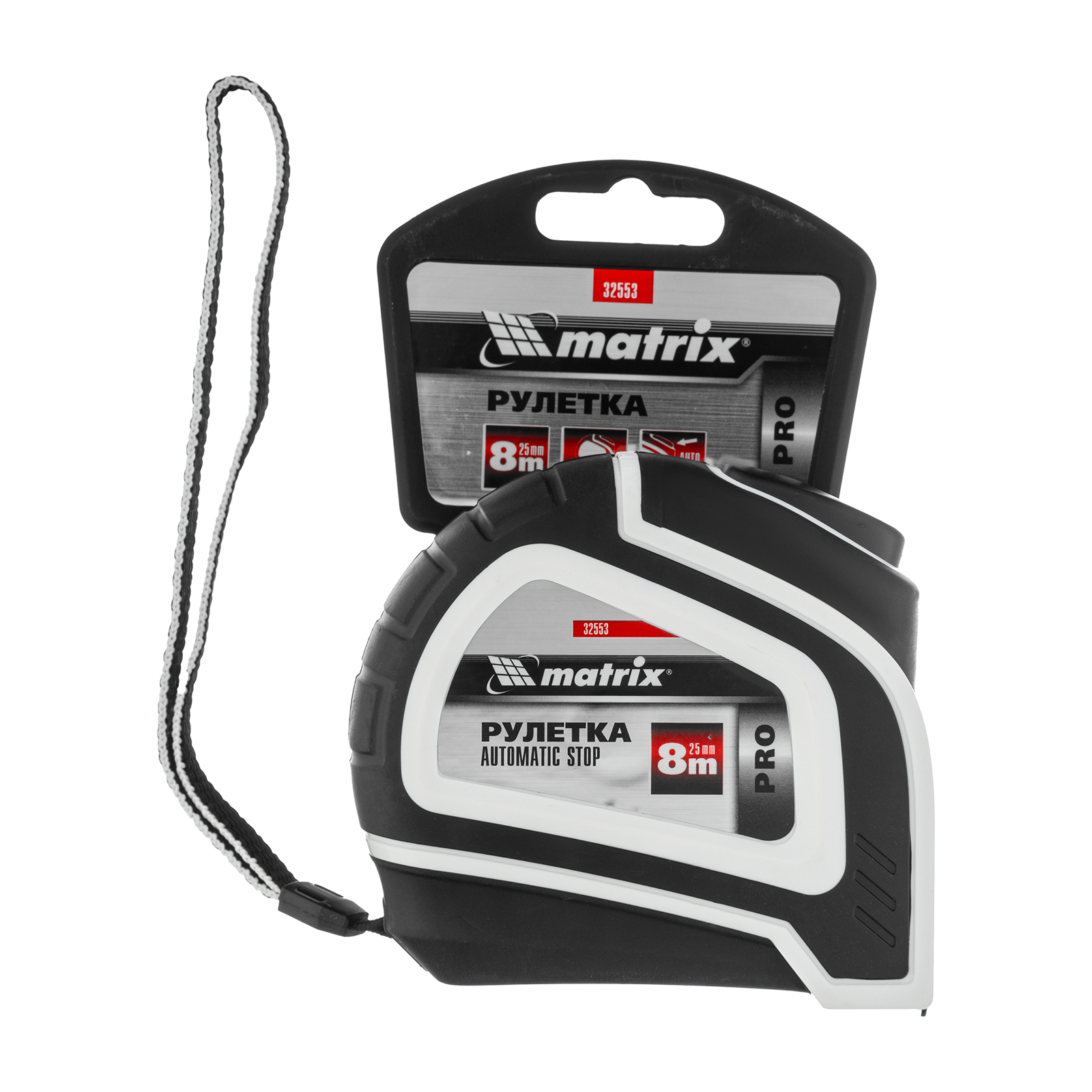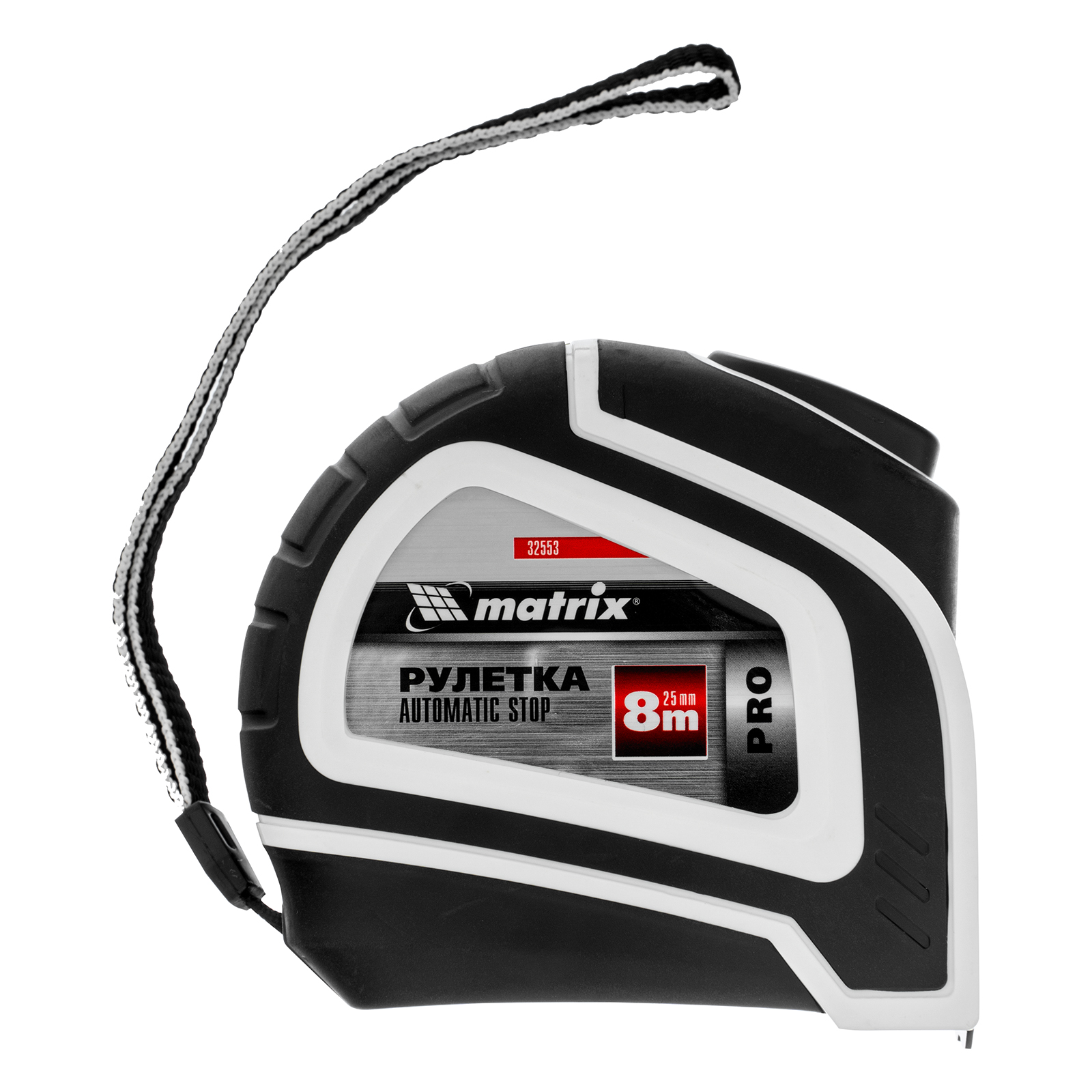 Рулетка Autostop,8 м х 25 мм,двухкомпонентный корпус,автоматическая фиксация,Pro Matrix в Челябинске