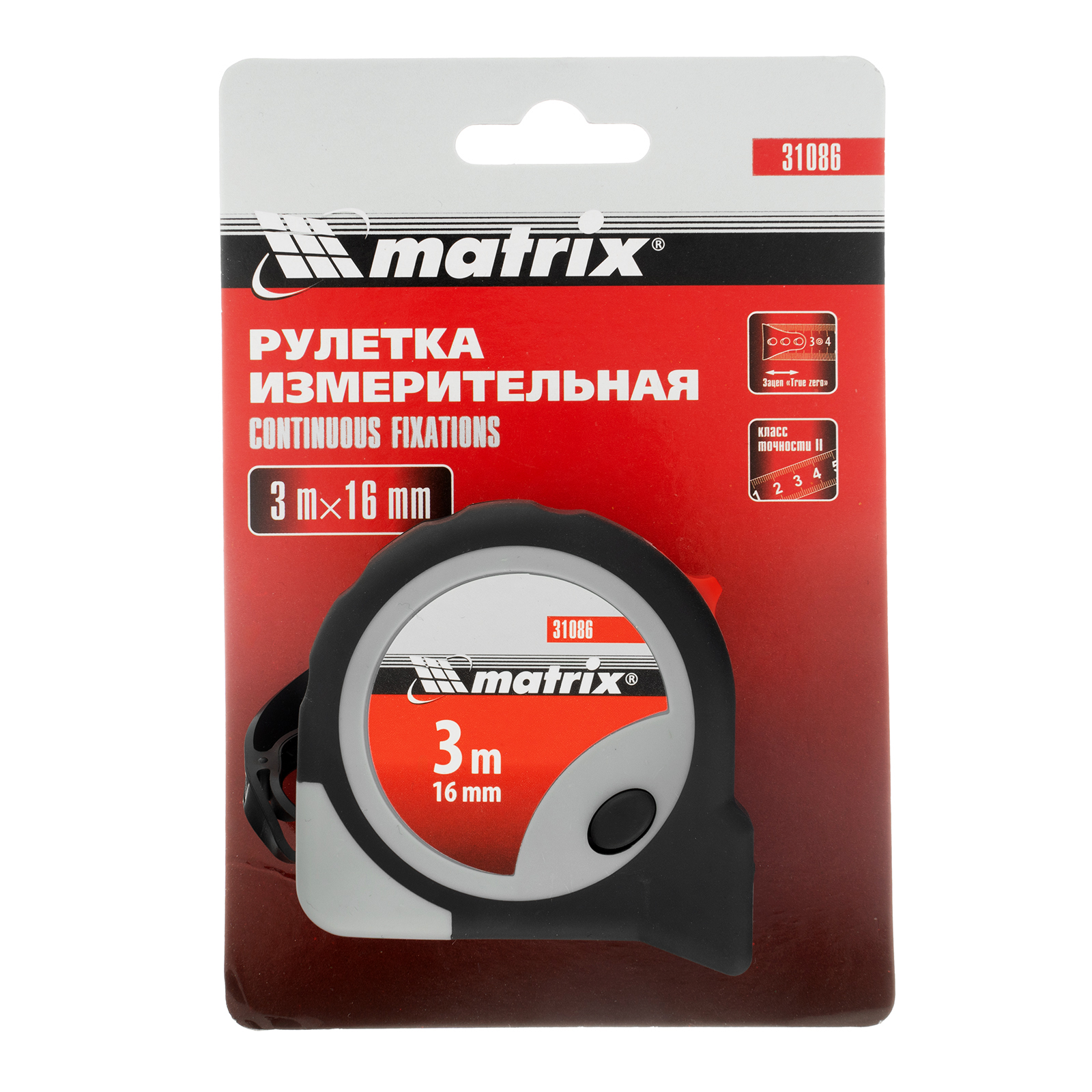 Рулетка Continuous fixation,3 м х 16 мм,двухкомпонентный корпус,плавная фиксация Matrix в Челябинске