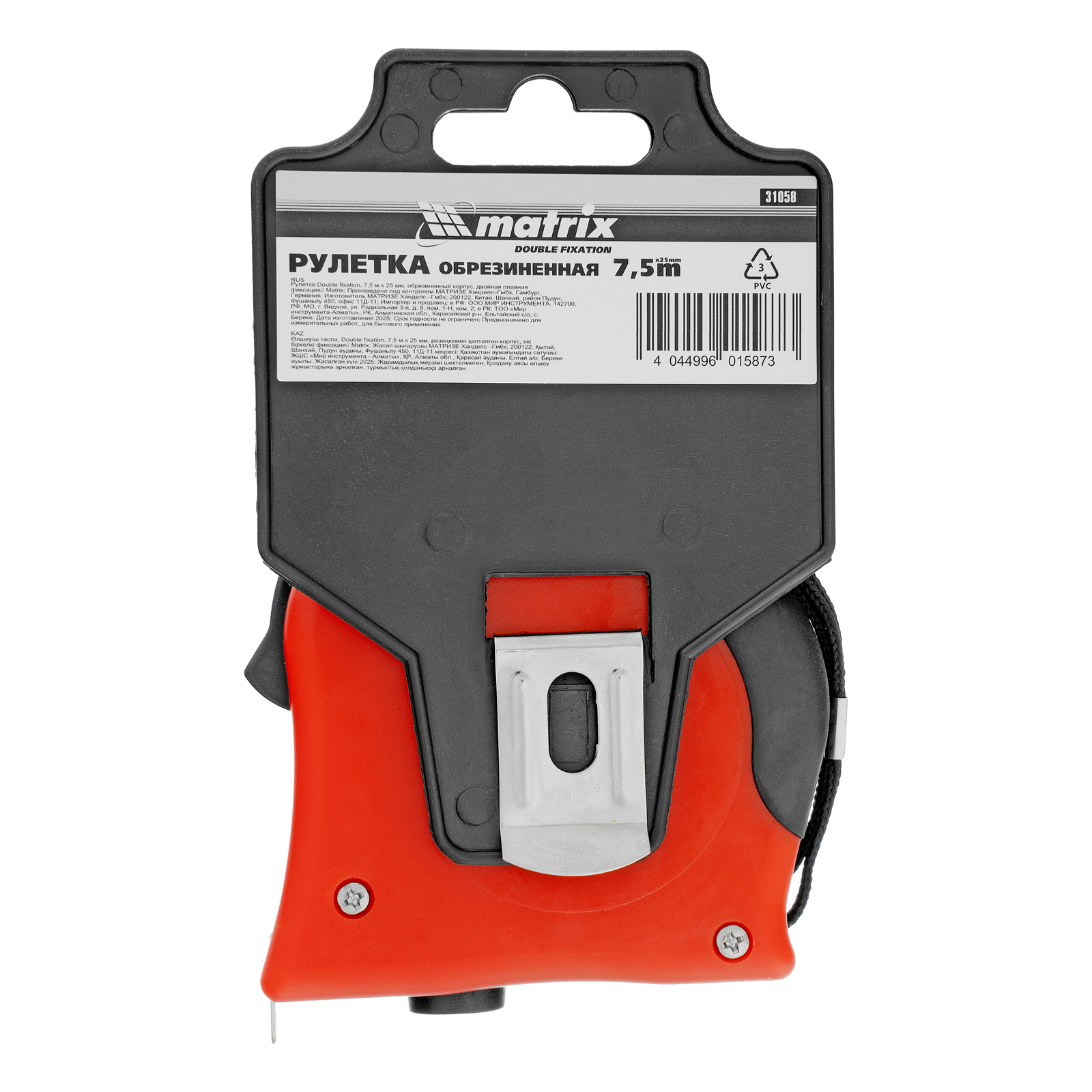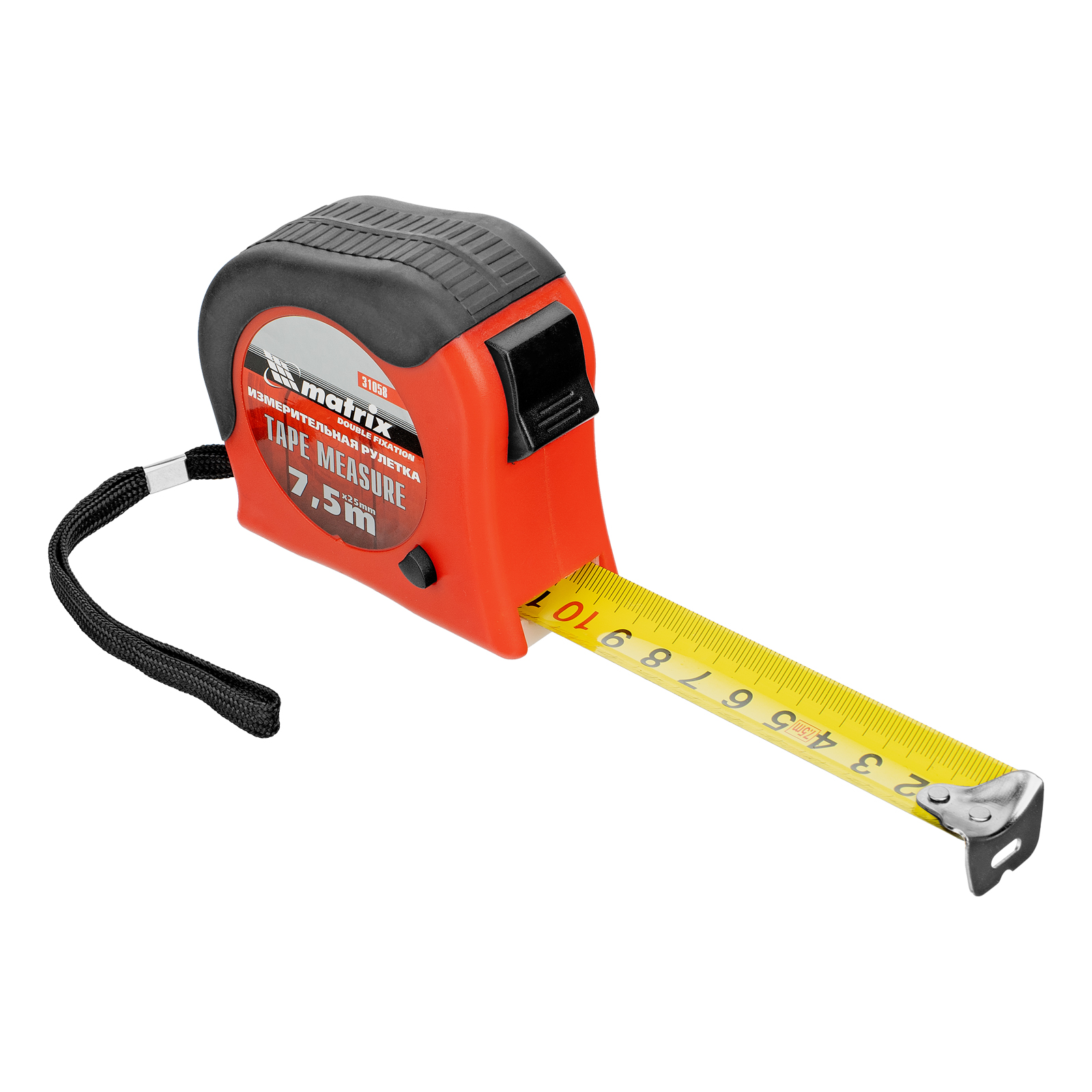 Рулетка Double fixation,7,5 м х 25 мм,обрезиненный корпус,двойная плавная фиксация Matrix в Челябинске