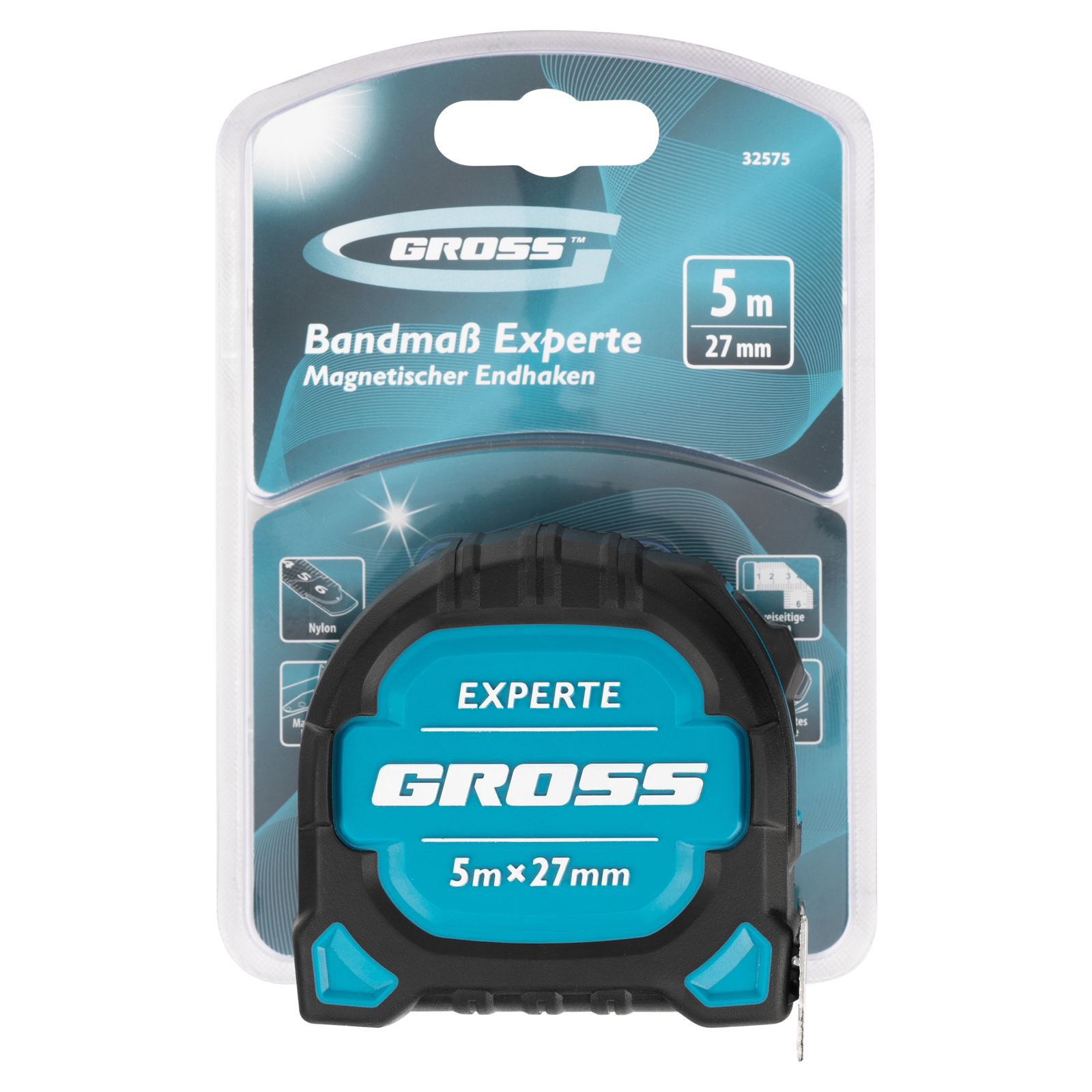 Рулетка Experte,5 м x 27 мм,двухкомпонентный корпус,магнит,двухсторонняя разметка,нейлон Gross в Челябинске