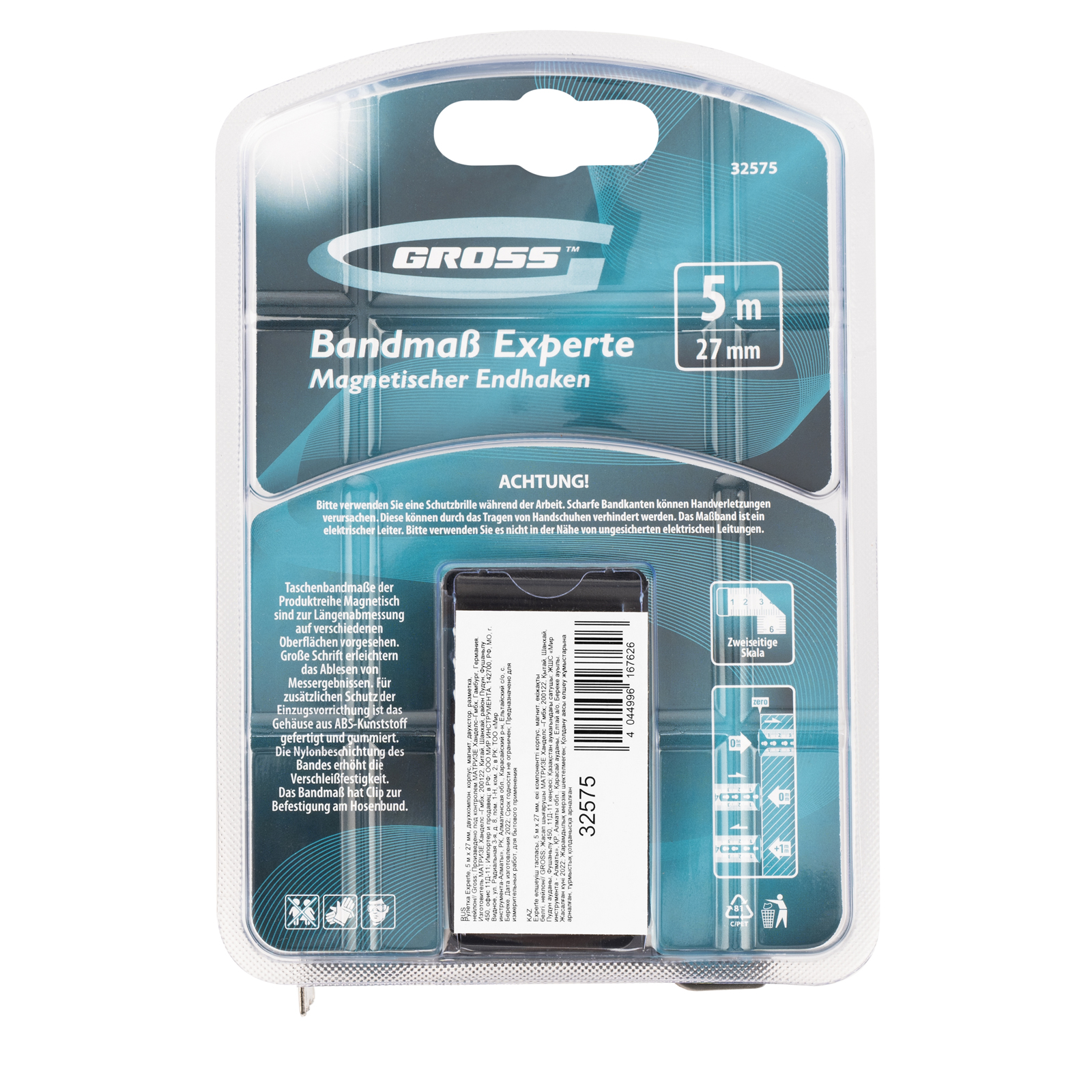 Рулетка Gross «Experte» 32575 с полотном 5 м х 27 мм, в двухкомпонентном корпусе, с двухсторонней разметкой и нейлоновым покрытием ленты, пригодится во время проведения ремонтных и строительных работ. С ее помощью можно измерять заготовки, материалы, конструкции и т.д. Благодаря магнитному зацепу рулетка оптимальна для работы с металлическими поверхностями, а широкое упругое полотно удобно для выполнения измерений в труднодоступных местах.