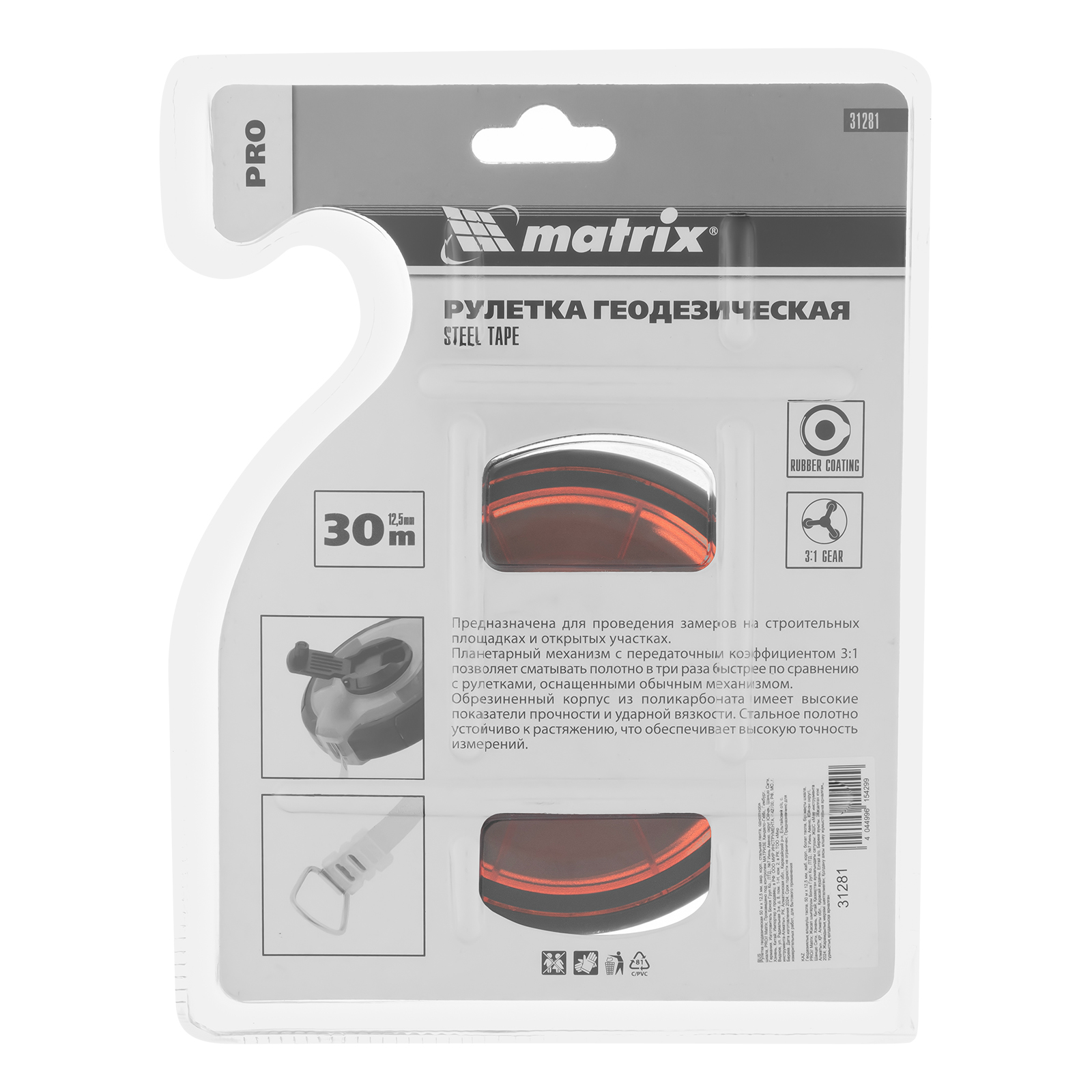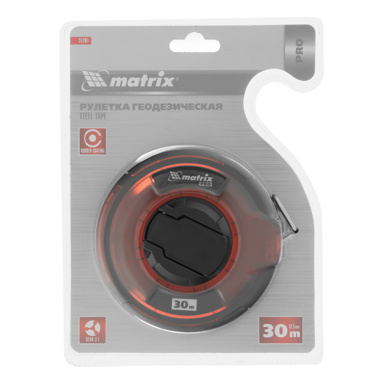 Рулетка геодезическая 30 м х 12,5 мм, закрытый корпус, стальная лента, односторонняя шкала, Pro Matrix в Челябинске