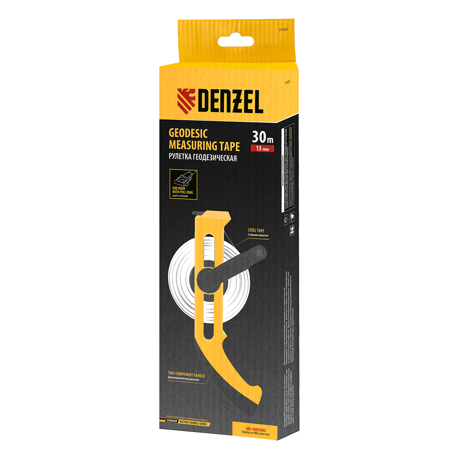 Рулетка геодезическая 30 м х 13 мм, открытый корпус, металлическая лента Denzel в Челябинске