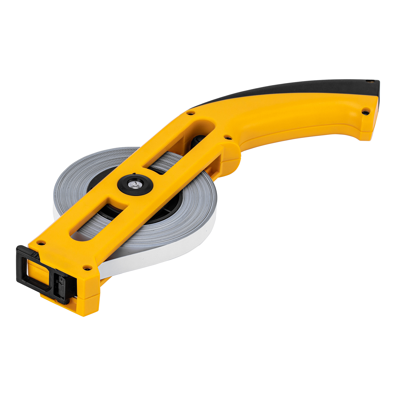 - Удобная фиксация измерительной ленты на объекте — рулетка оснащена кольцом с подвижным зацепом.