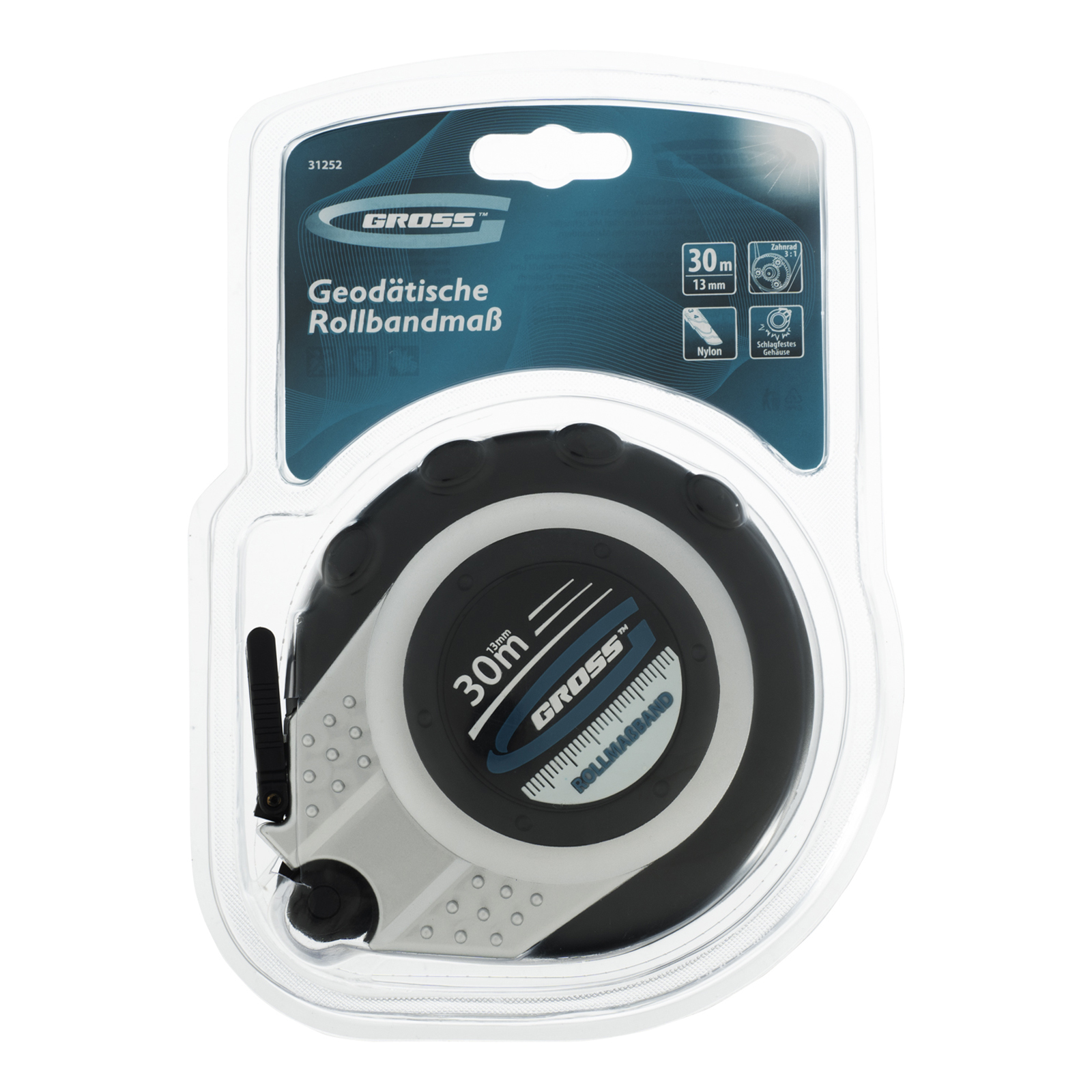 Рулетка геодезическая 30 м х 13 мм, закрытый корпус, металлическая лента, нейлон Gross в Челябинске