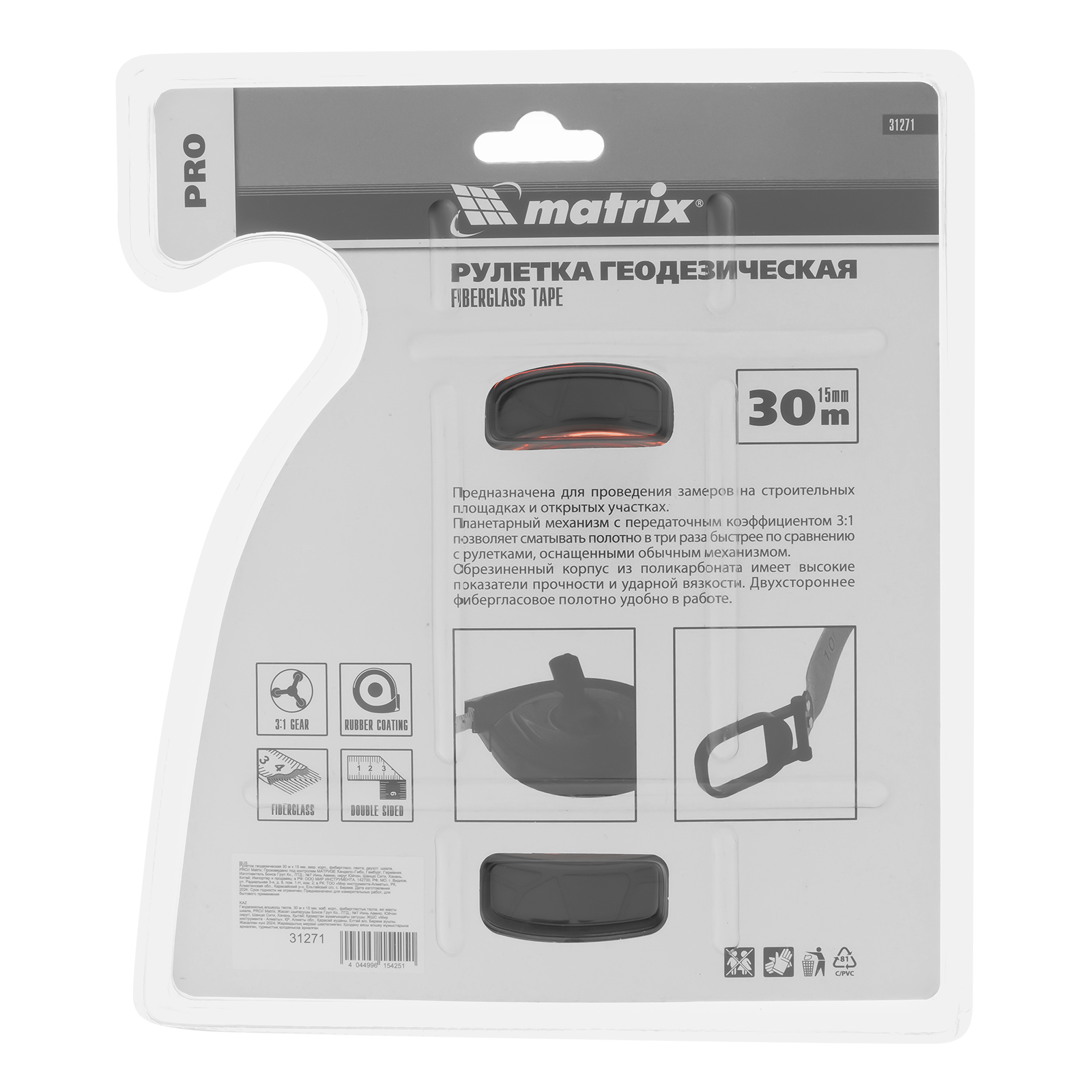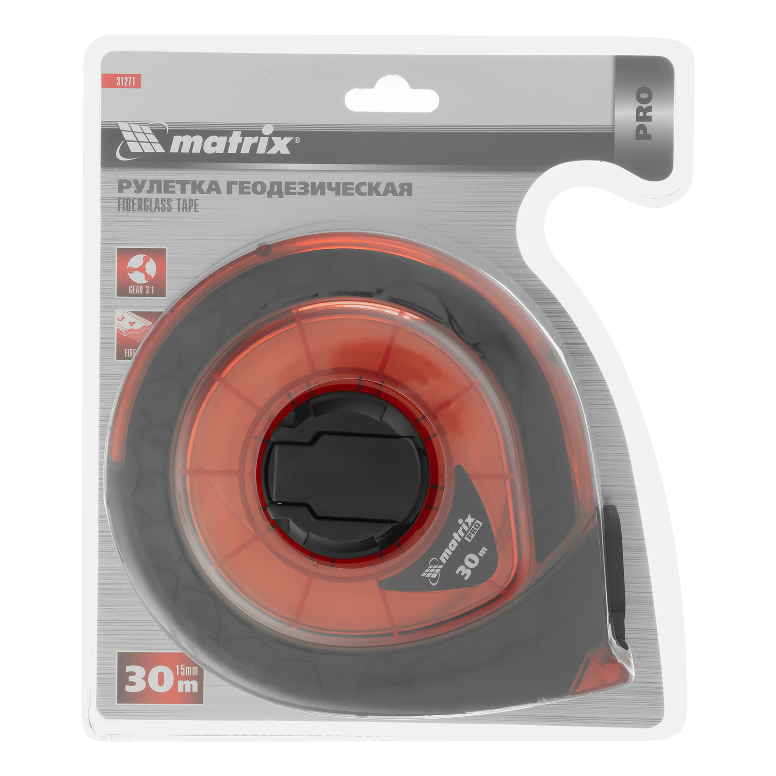 Рулетка геодезическая 30 м х 15 мм, закрытый корпус, фибергласовая лента, двусторонняя шкала, Pro Matrix в Челябинске