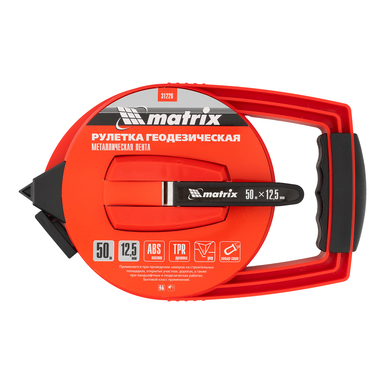 Рулетка геодезическая, 50 м х 12,5 мм, металлическая лента, закрытый корпус Matrix в Челябинске