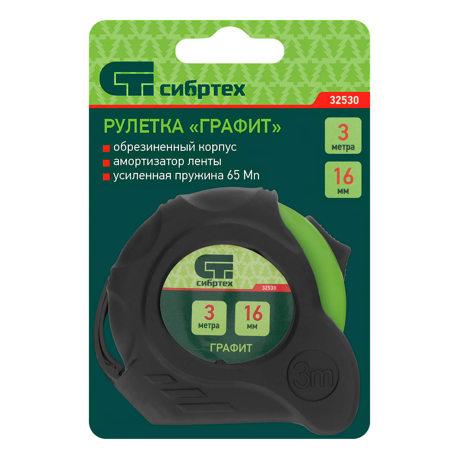 Рулетка Графит,обрезиненный корпус,амортизатор,3 м х 16 мм Сибртех в Челябинске