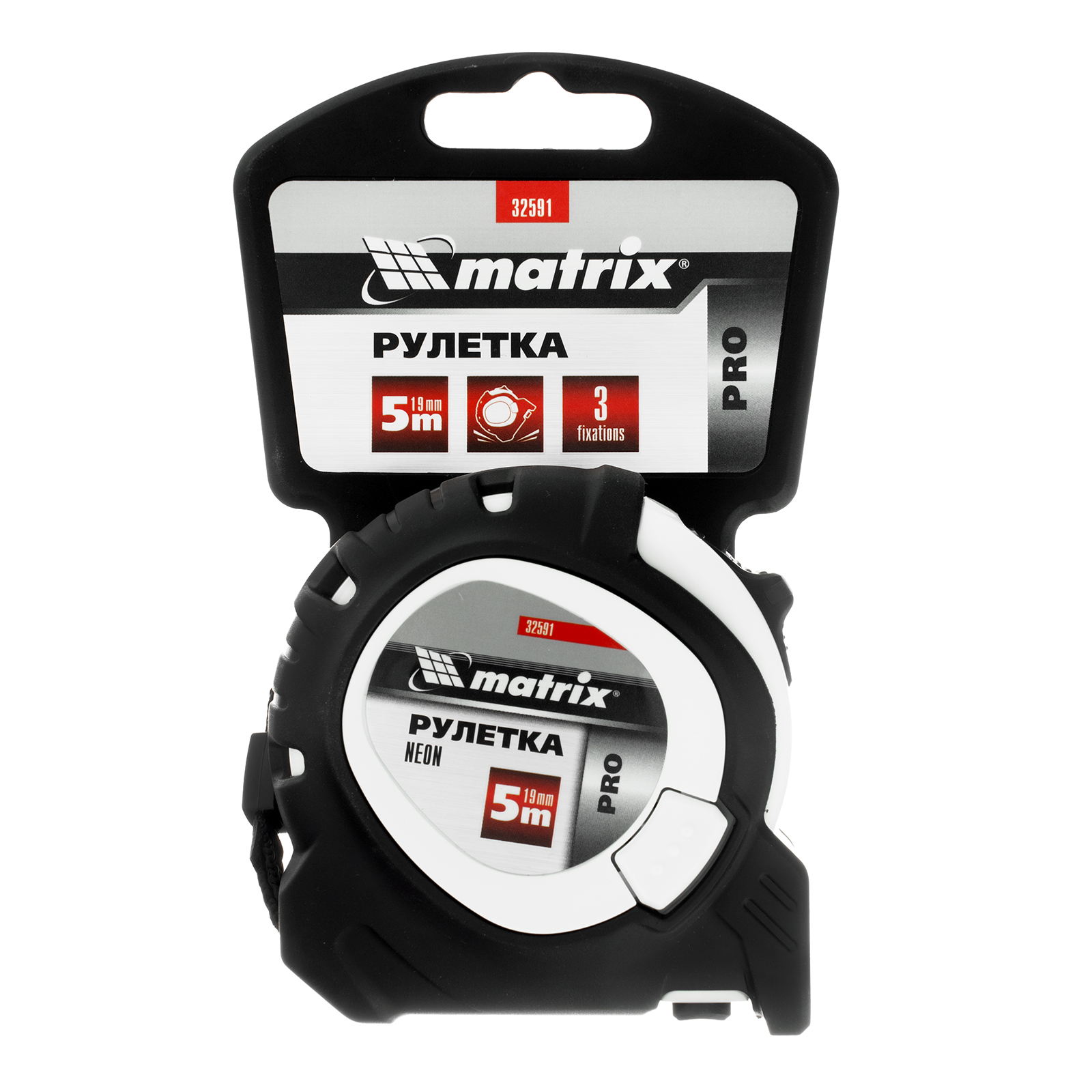 Рулетка Neon,5 м x 19 мм,обрезиненный корпус,3 фиксации,Pro Matrix в Челябинске