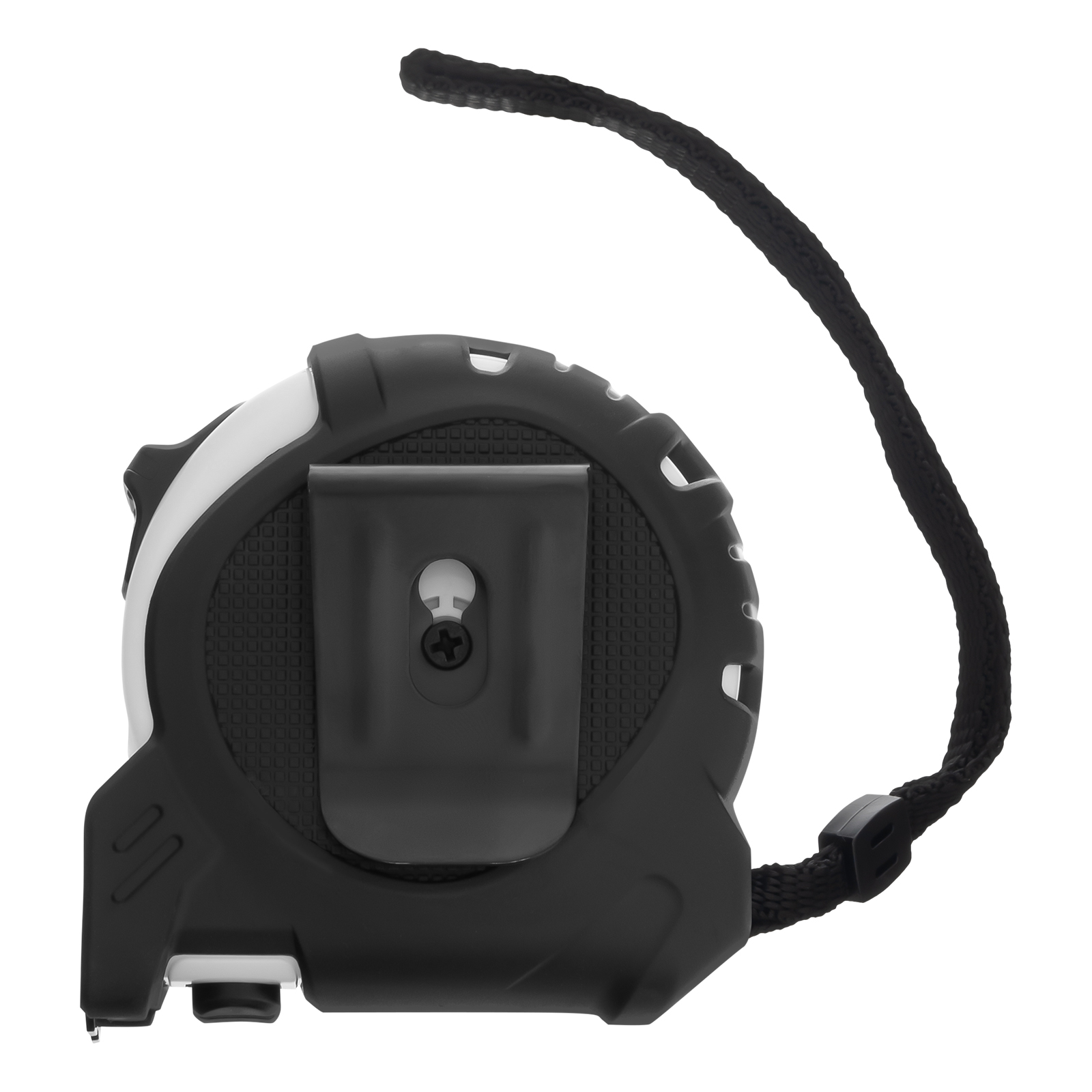 - Удобная транспортировка — рулетку можно повесить на запястье за ремешок или закрепить на поясе при помощи металлического зажима на корпусе.