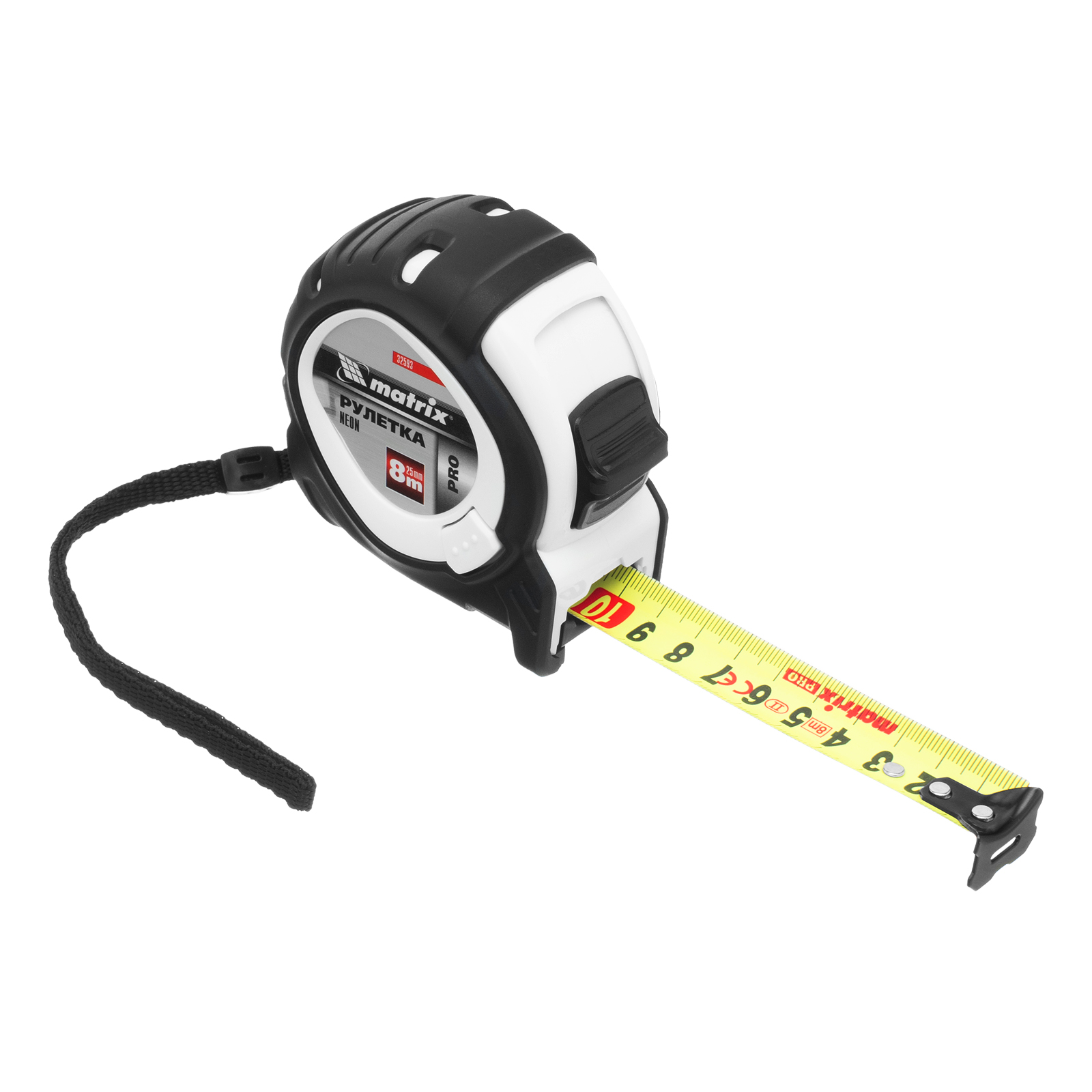 Рулетка Neon,8 м x 25 мм,обрезиненный корпус,3 фиксации,Pro Matrix в Челябинске