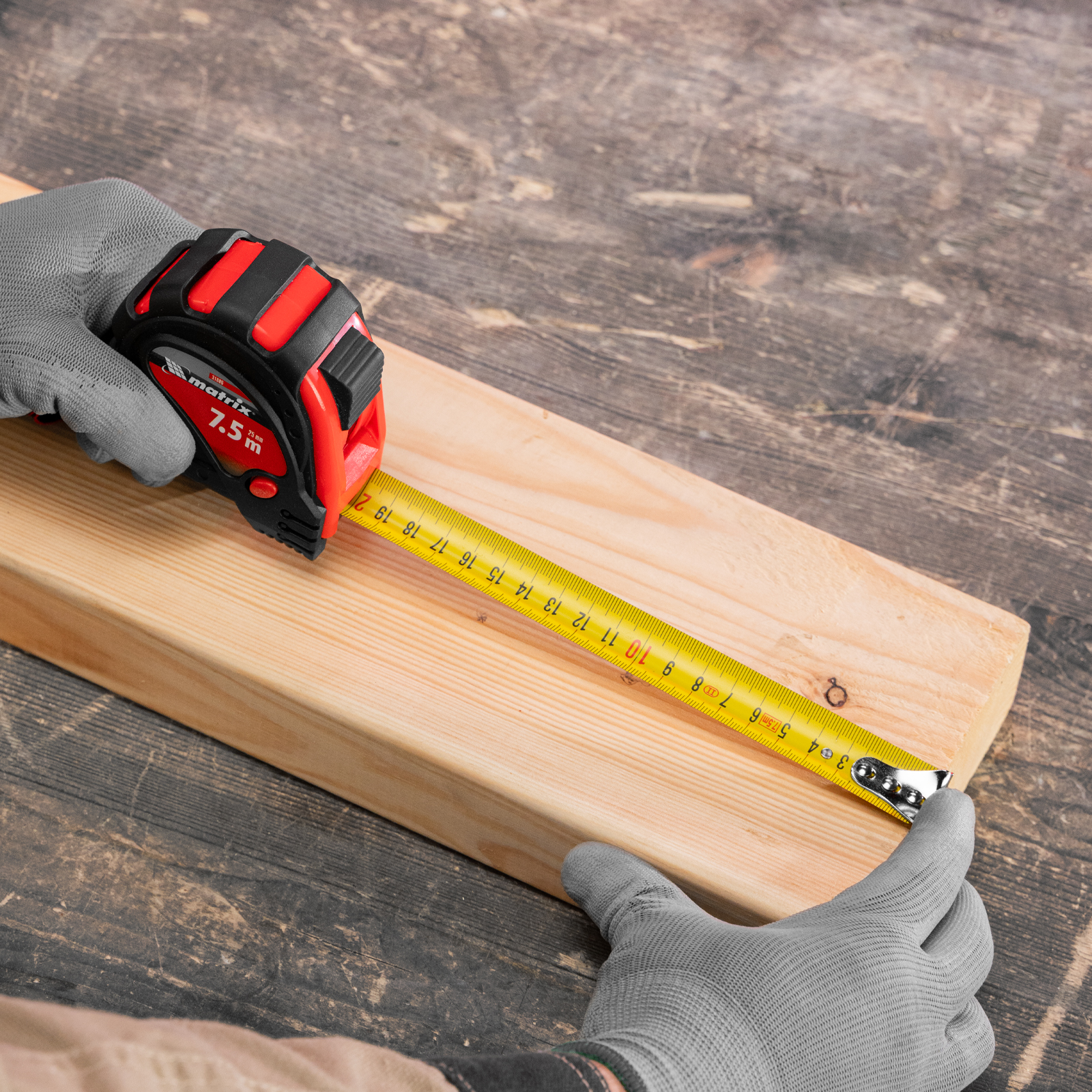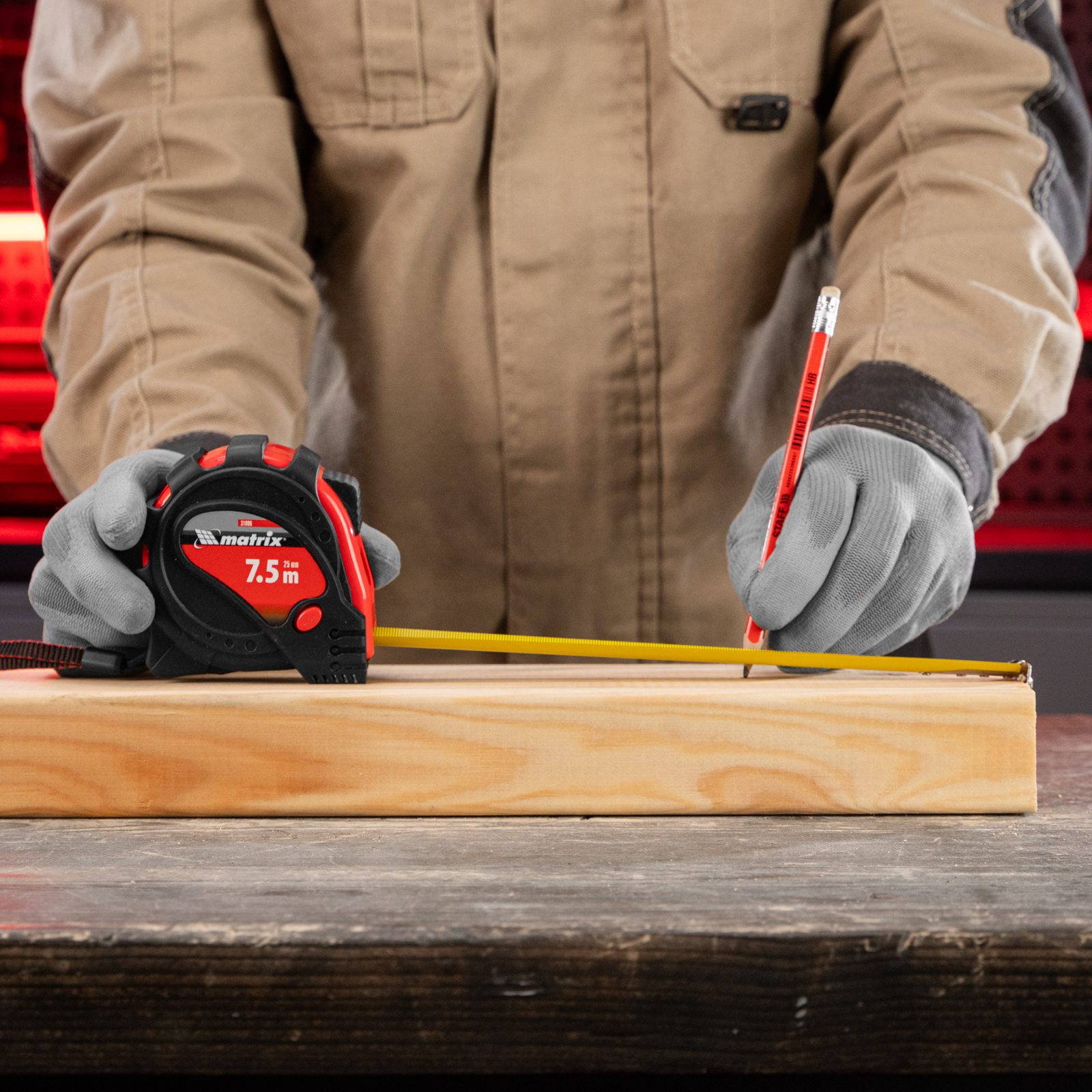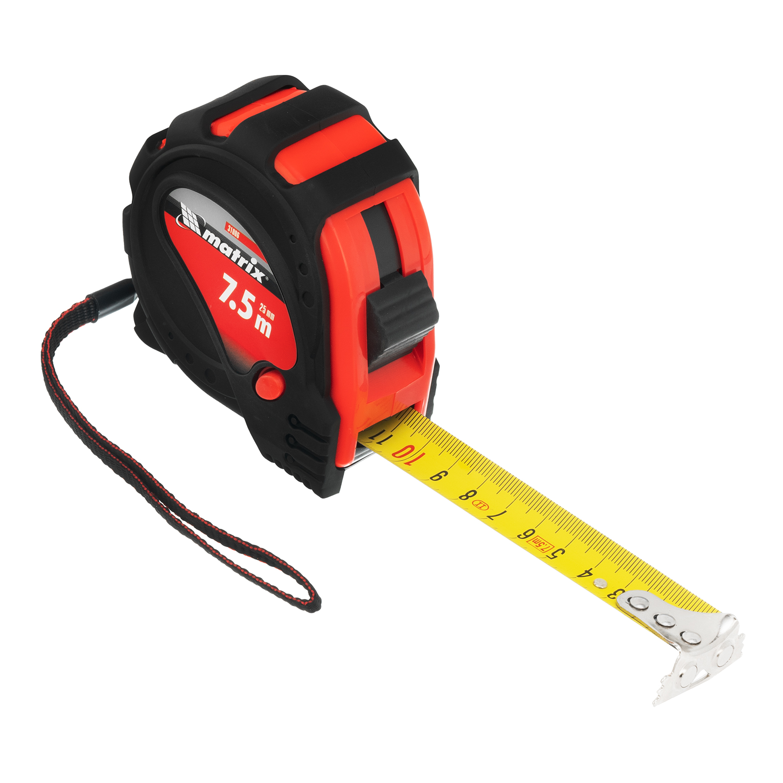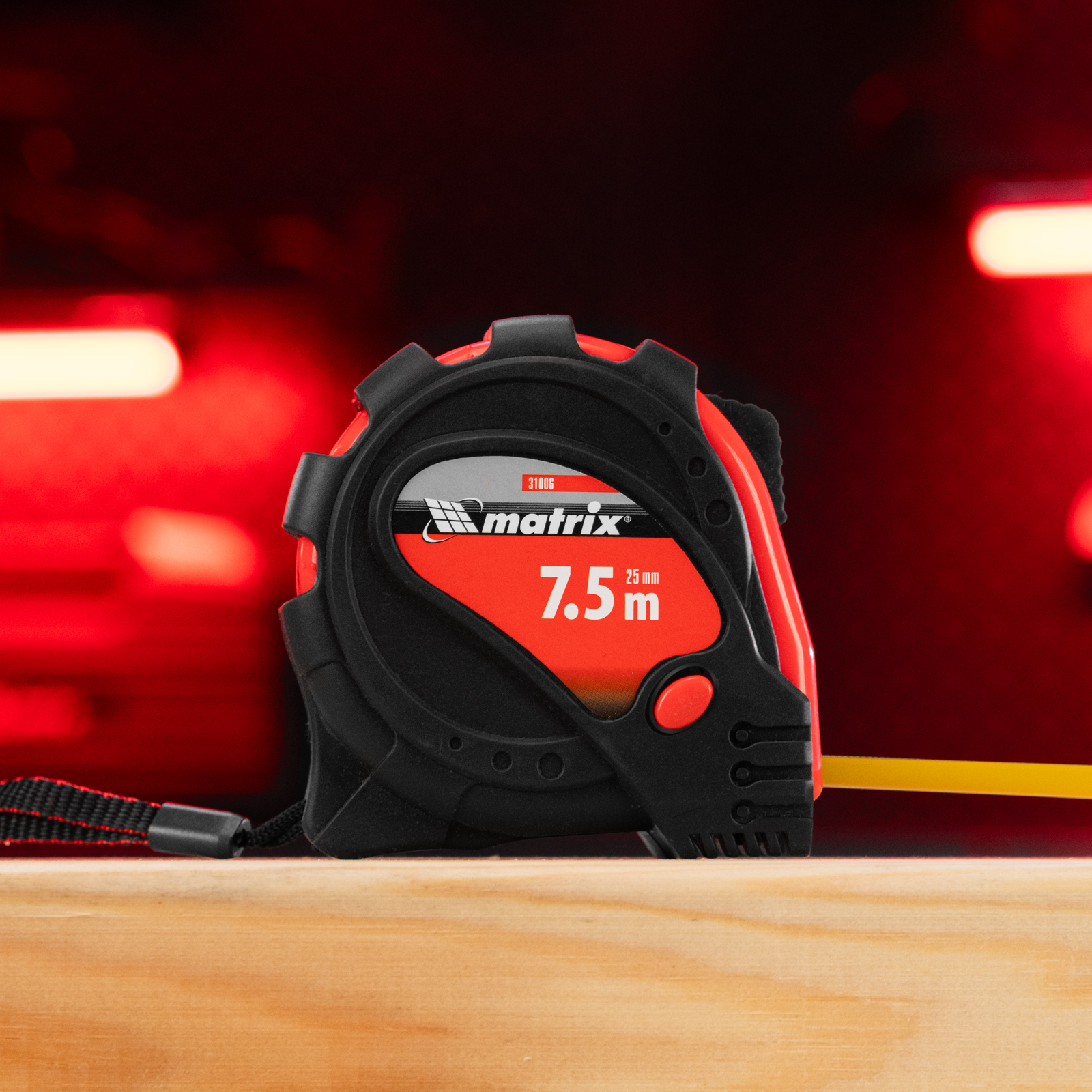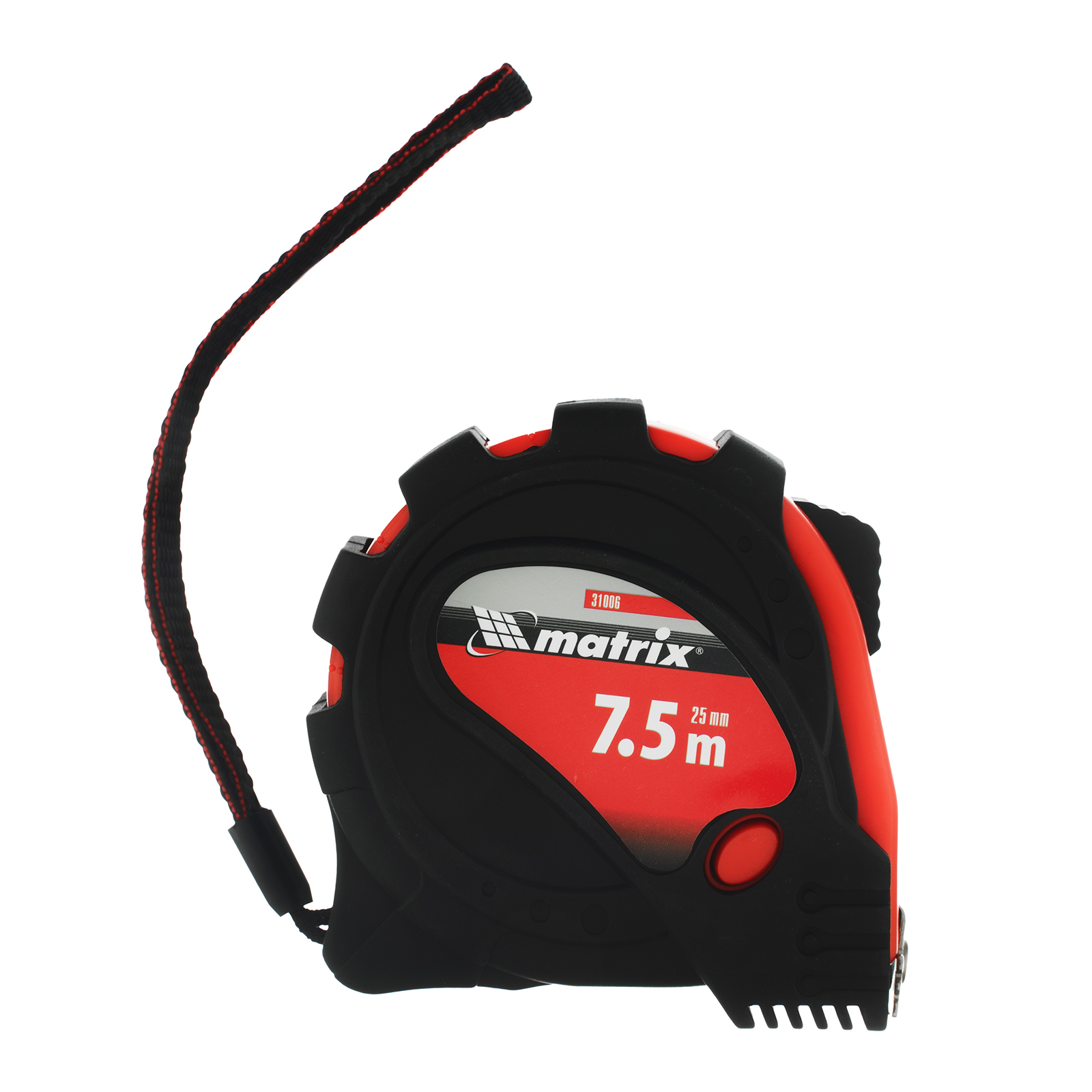 Рулетка Matrix Status magnet 3 fixations 31006 с полотном длиной 7,5 м и шириной 25 мм, в обрезиненном корпусе, оснащенная зацепом с магнитом, предназначена для измерения различных объектов и расстояний. Имеет класс точности 2 и цену деления 1 мм, что обеспечивает достаточную результативность замеров. Магнитный зацеп позволяет четко фиксировать измерительное полотно на металлических предметах. Стальная лента шириной 25 мм обладает большой упругостью, что облегчает работу в труднодоступных местах. Рулетка будет полезна при проведении строительных работ, а также пригодится в быту.