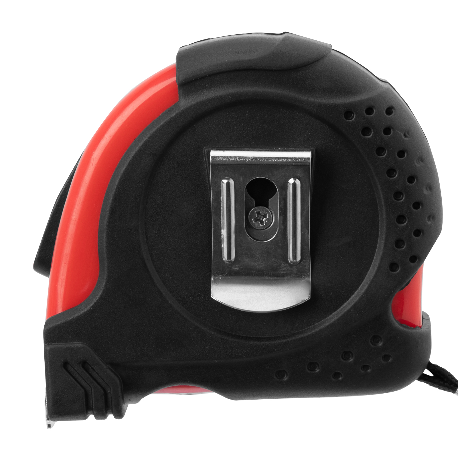 - Дополнительные возможности — шнурок для крепления на запястье уменьшает риск падения рулетки, на боковой поверхности корпуса имеется зажим для фиксации рулетки на поясном ремне.