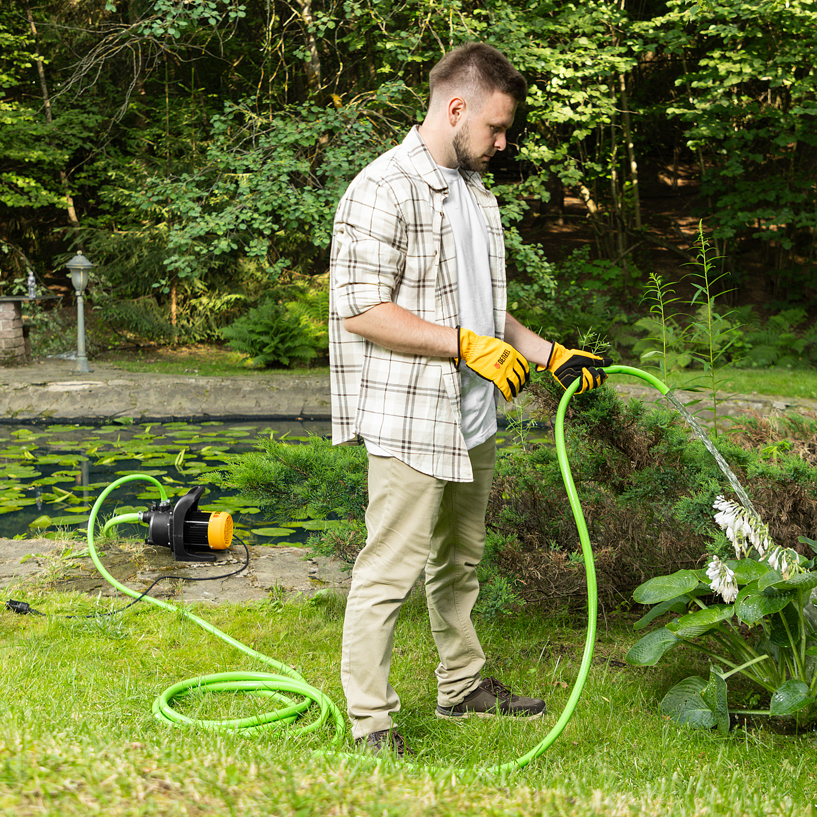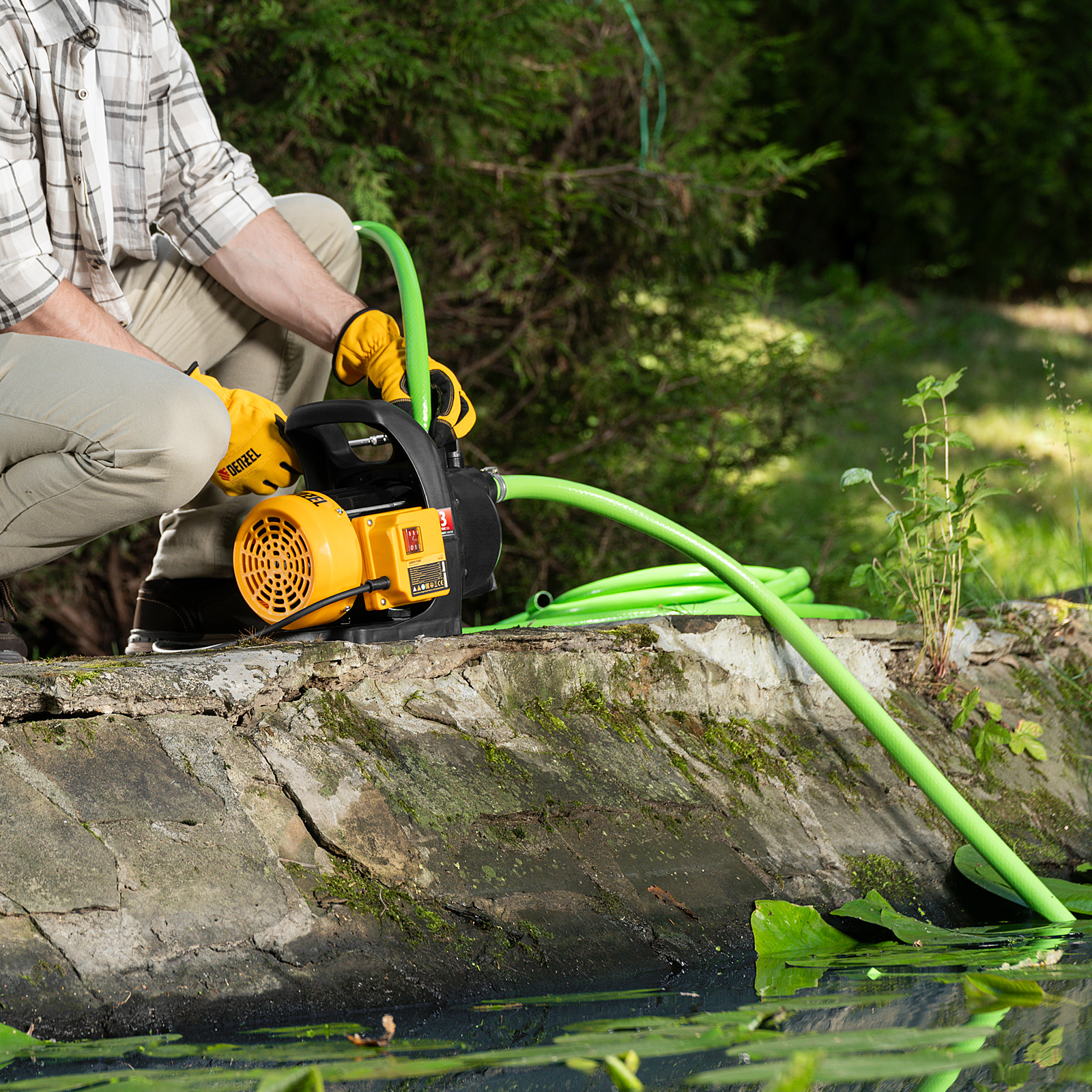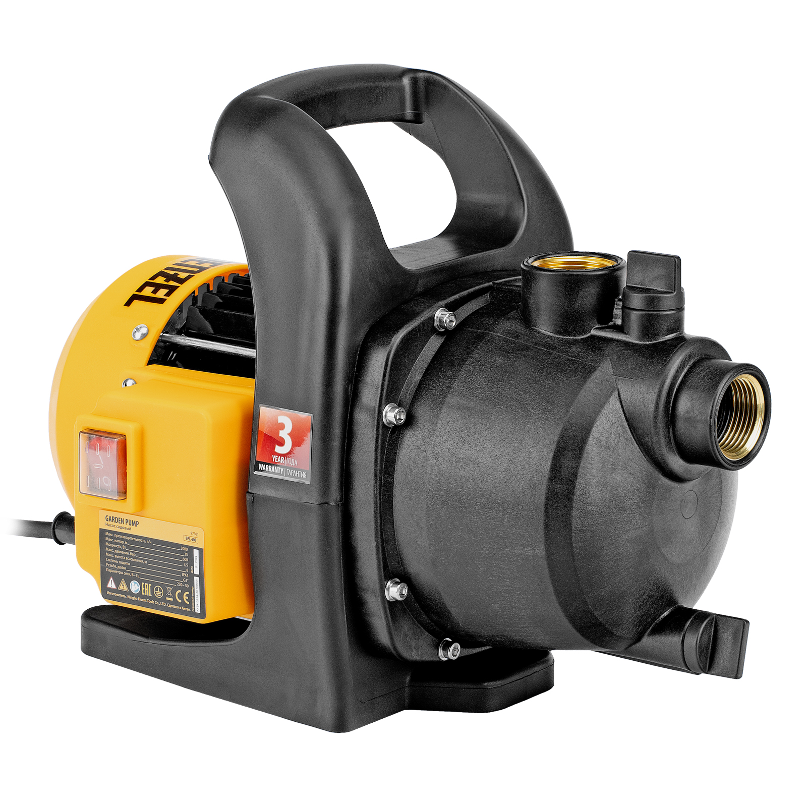 Садовый поверхностный насос Denzel GPL600 97301 мощностью 600 Вт и производительностью 3000 л/ч, с корпусом из пластика, предназначен для забора чистой воды из колодцев, водоемов, различных резервуаров, и подъема ее на высоту до 35 м. Используется для проведения поливочных работ или организации системы водоснабжения в загородном доме. Способен обеспечить водой несколько точек водоразбора.
