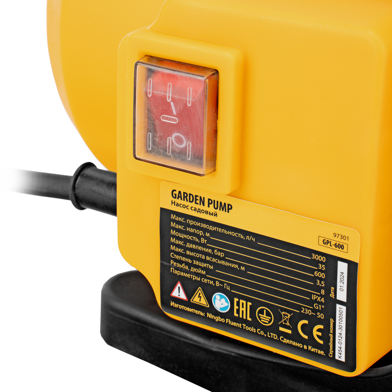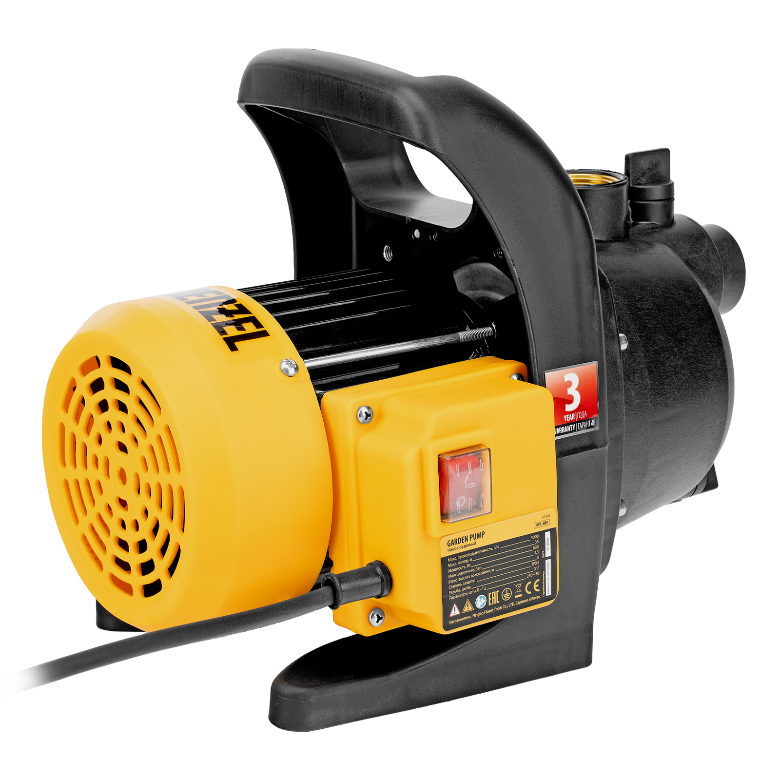 Садовый поверхностный насос GPL600, 600 Вт, 3000 л/ч, подъем 35 м, пластик Denzel в Челябинске