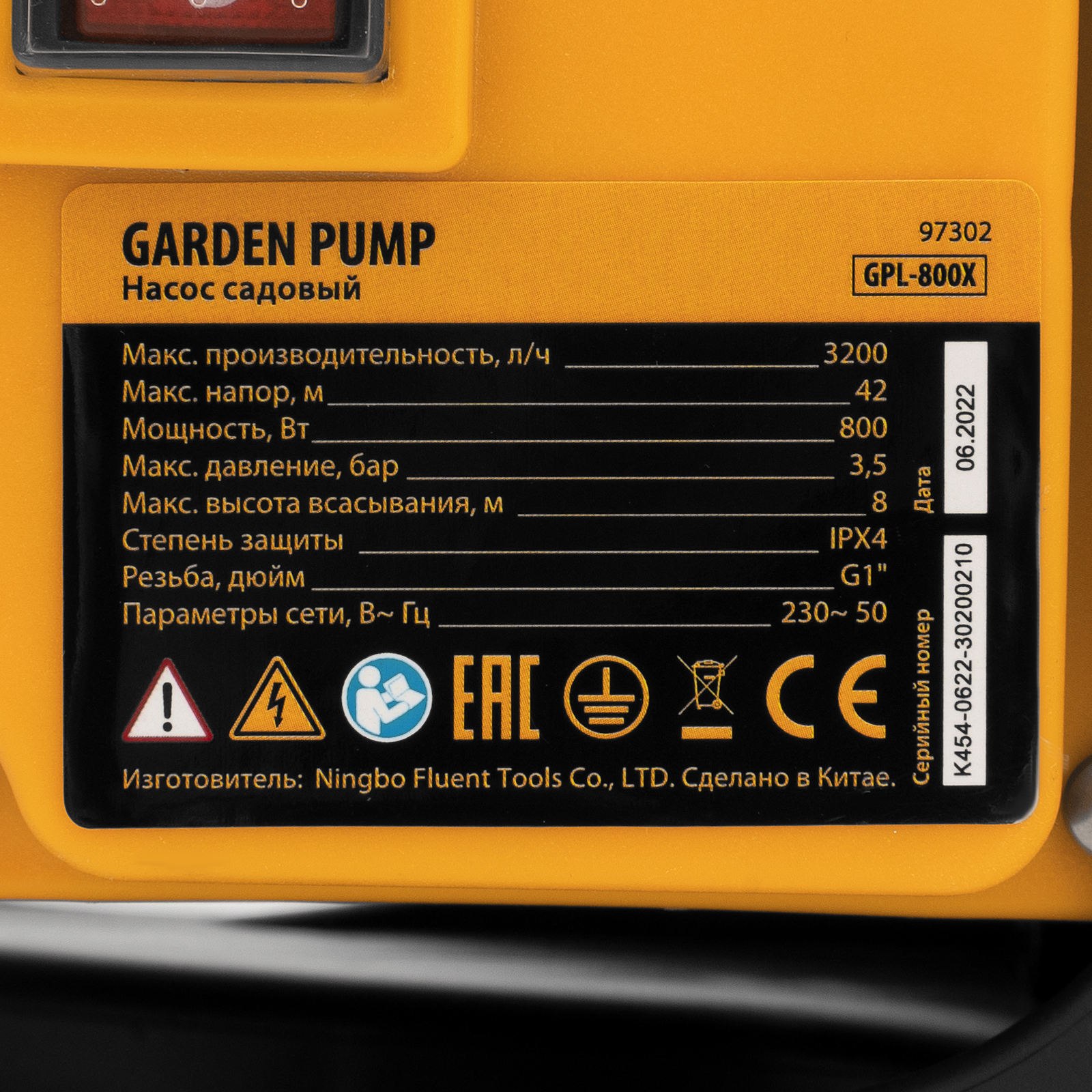 Садовый поверхностный насос GPL800Х, 800 Вт, 3200 л/ч, подъем 42 м, нержавейка Denzel в Челябинске