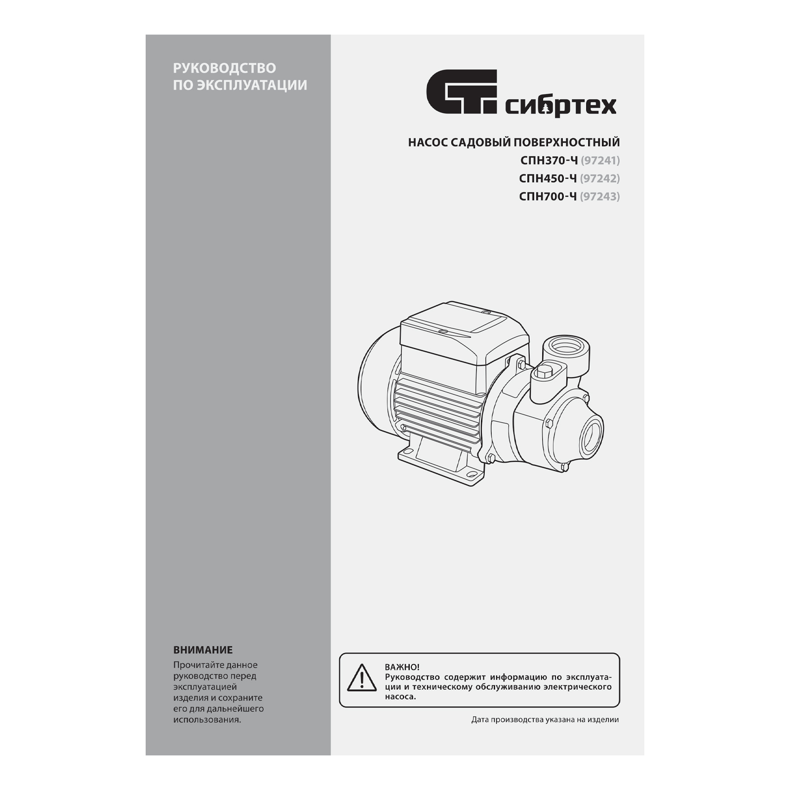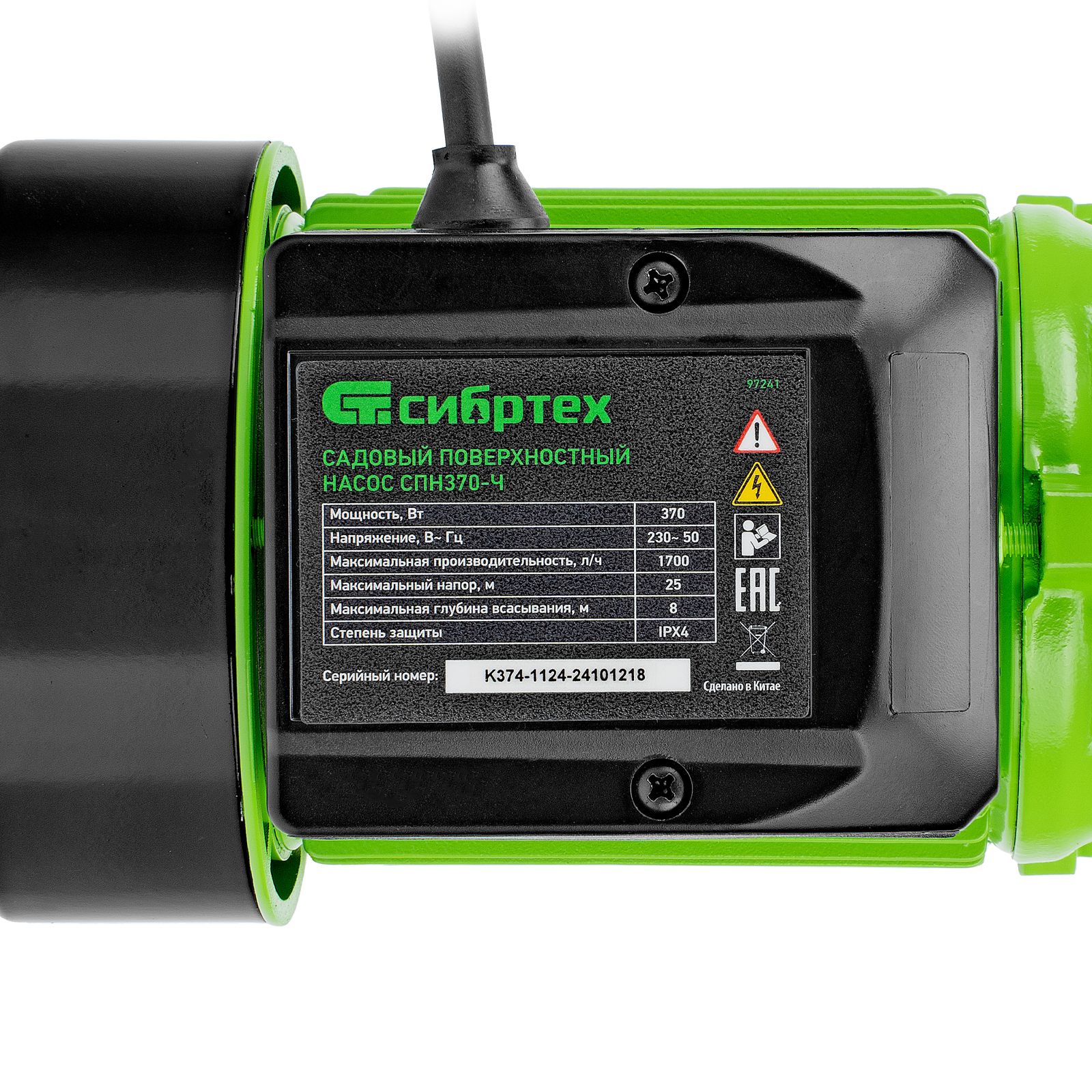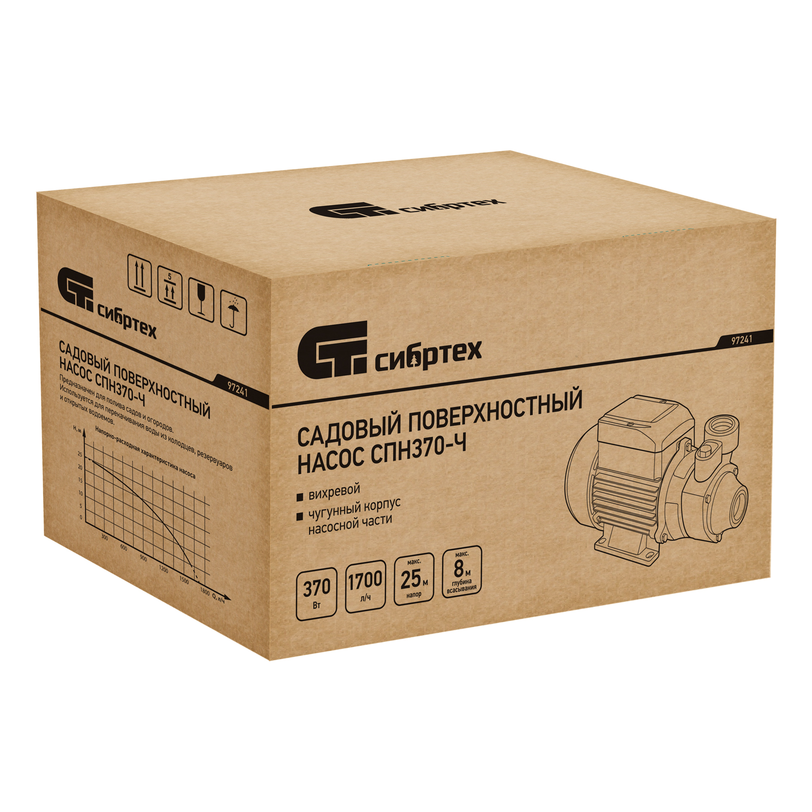 Садовый поверхностный насос СПН370-Ч, 370 Вт, напор 25 м, 1700 л/ч, чугун Сибртех в Челябинске