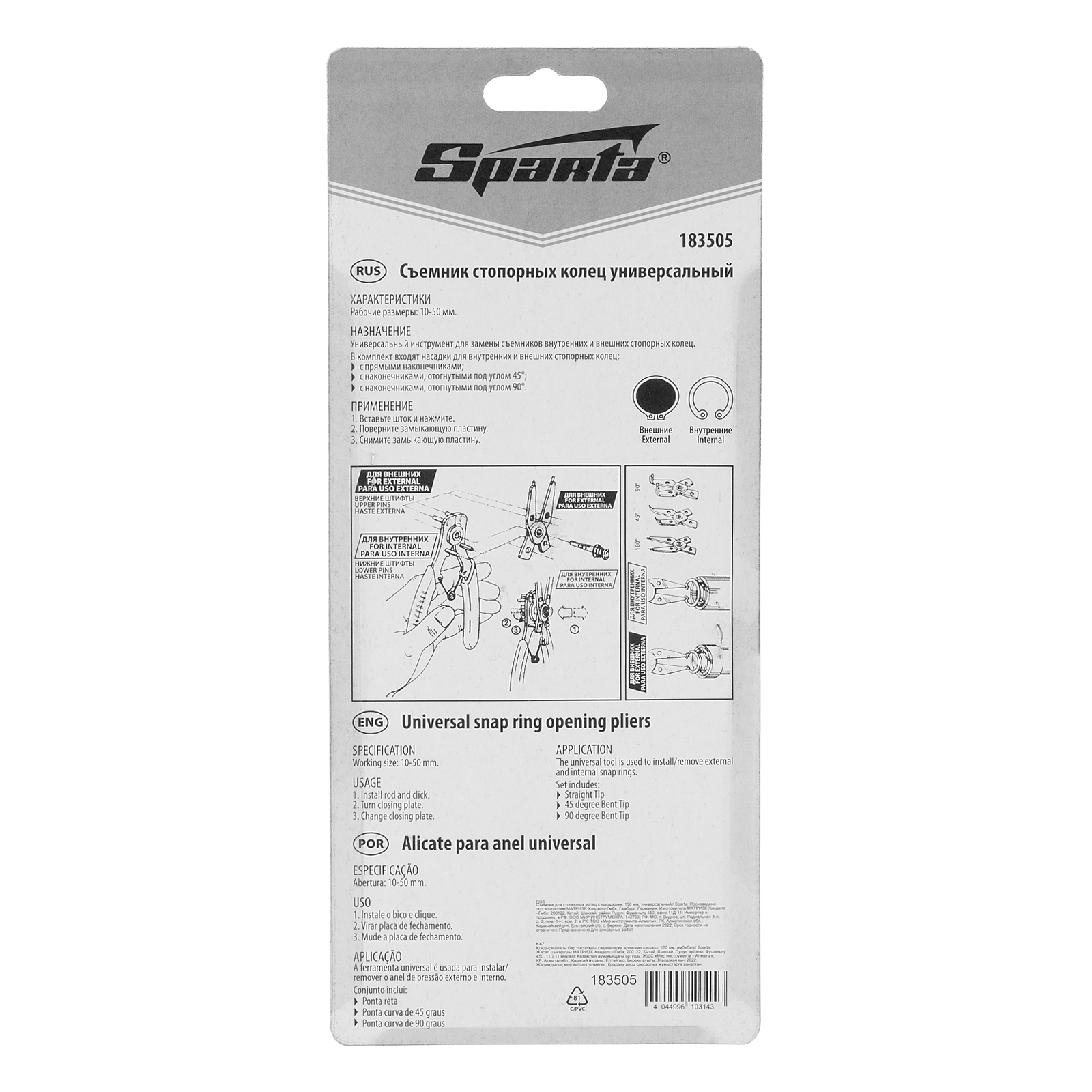 Съемник для стопорных колец с насадками, 150 мм, универсальный Sparta в Челябинске