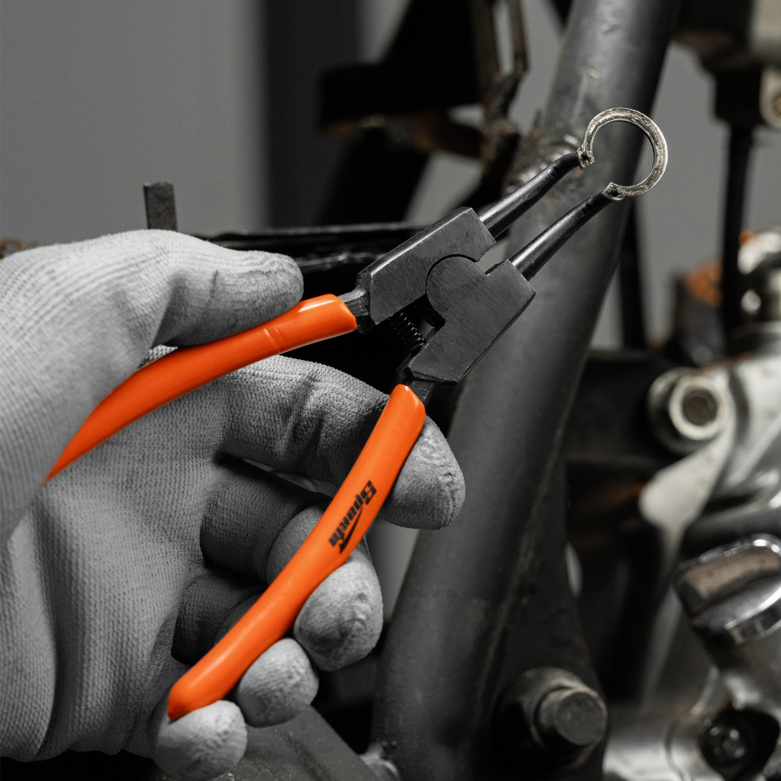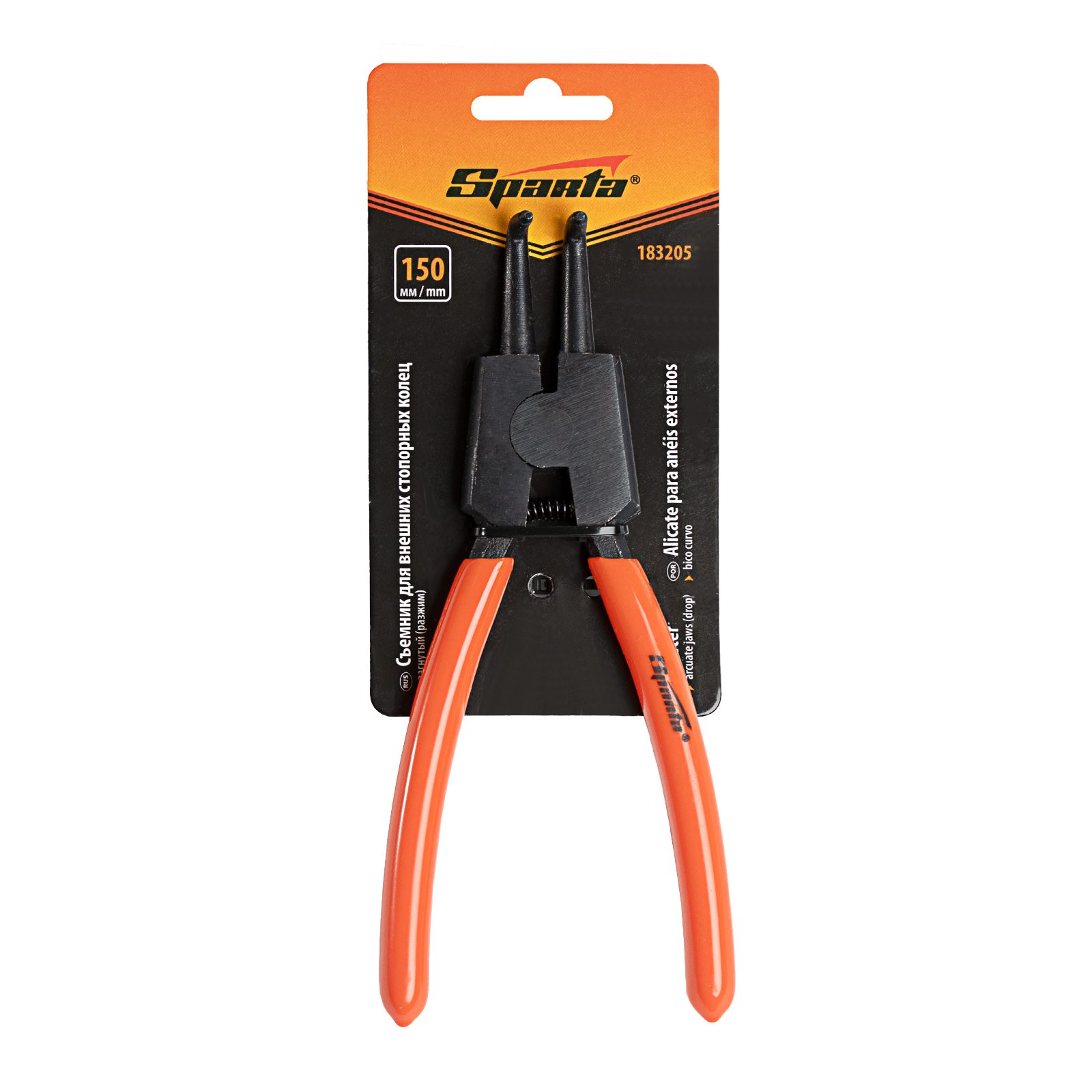 Съемник Sparta 183205 длиной 150 мм, с изогнутыми губками, работает на разжим и предназначен для снятия и установки внешних стопорных колец. Наконечники вставляются в отверстия ушек кольца, при сжатии рукояток кольцо разжимается, и его можно установить на посадочное место. Благодаря особой форме наконечников ушки кольца не соскальзывают с них. Съемник стопорных колец используется для ремонта автомобилей, велосипедов, бытовой техники.