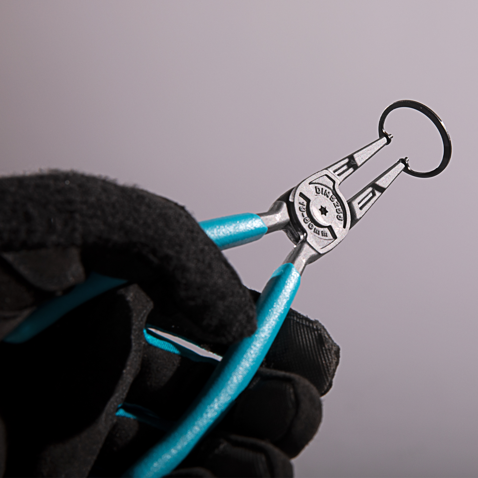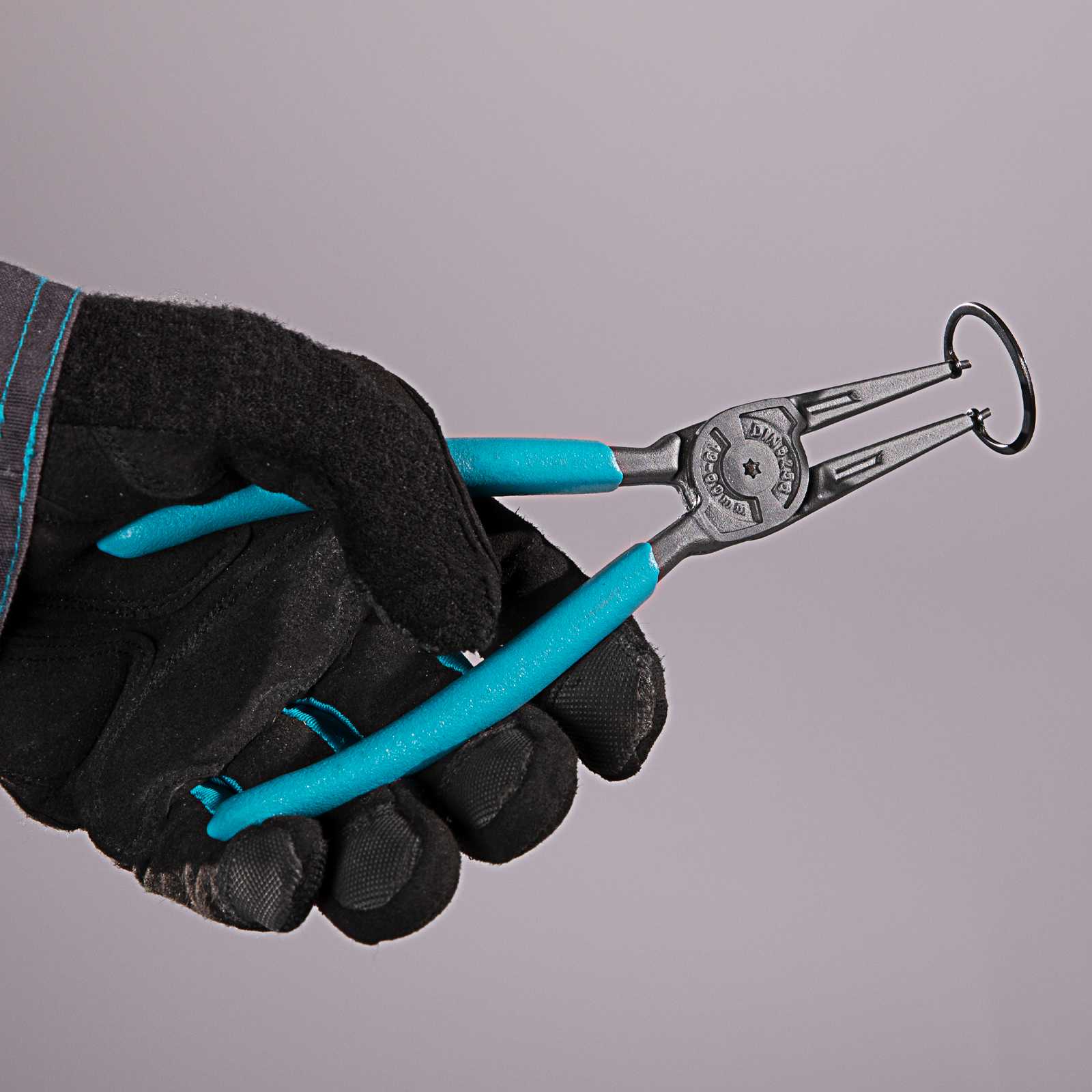 - Съемник стопорных колец устойчив к нагрузкам, т.к. изготовлен из хромованадиевой стали.