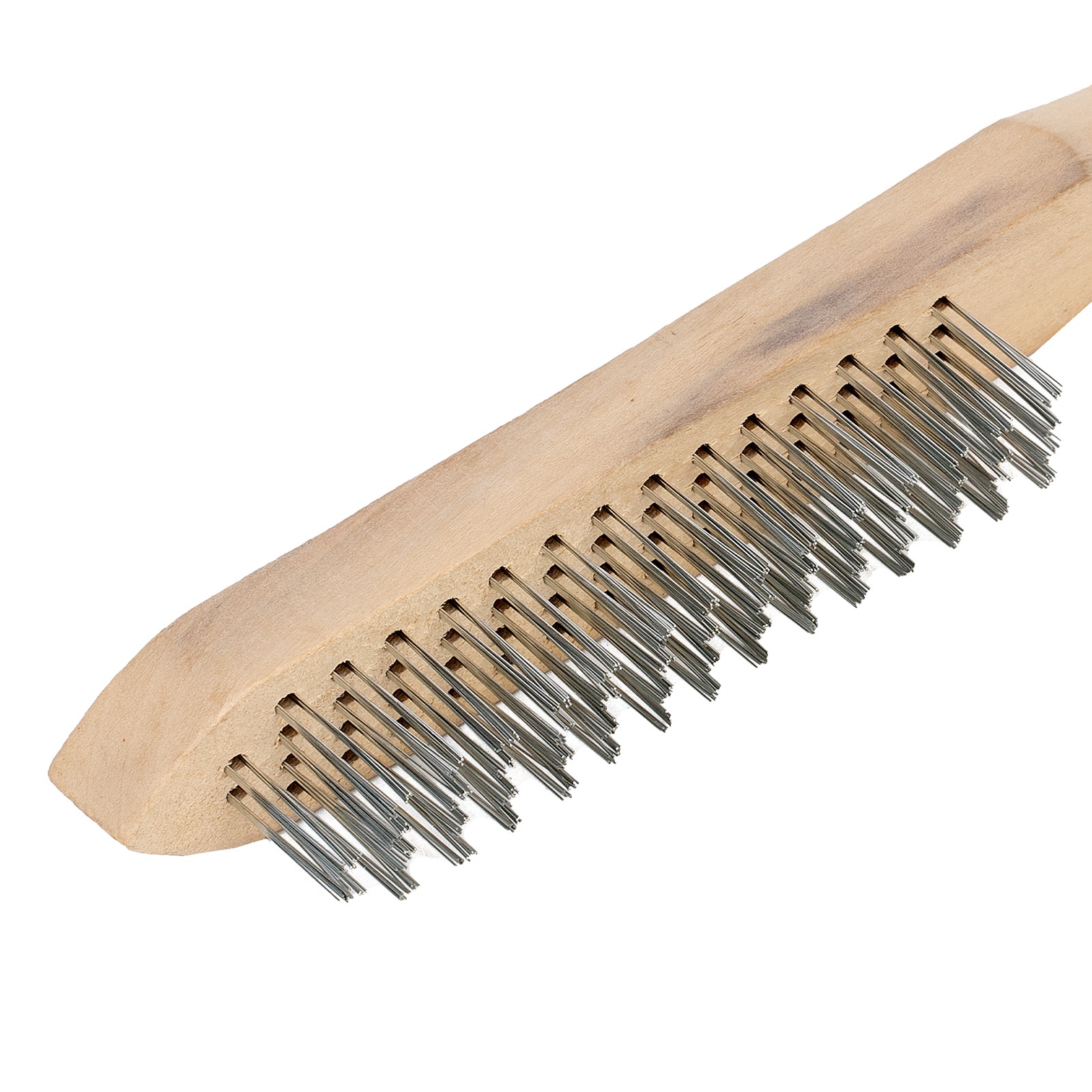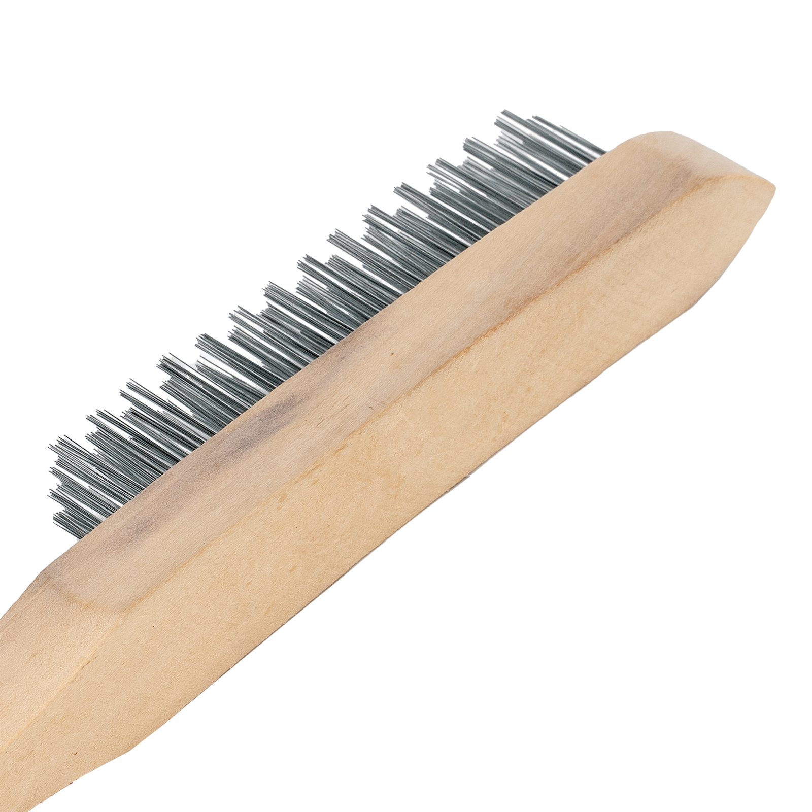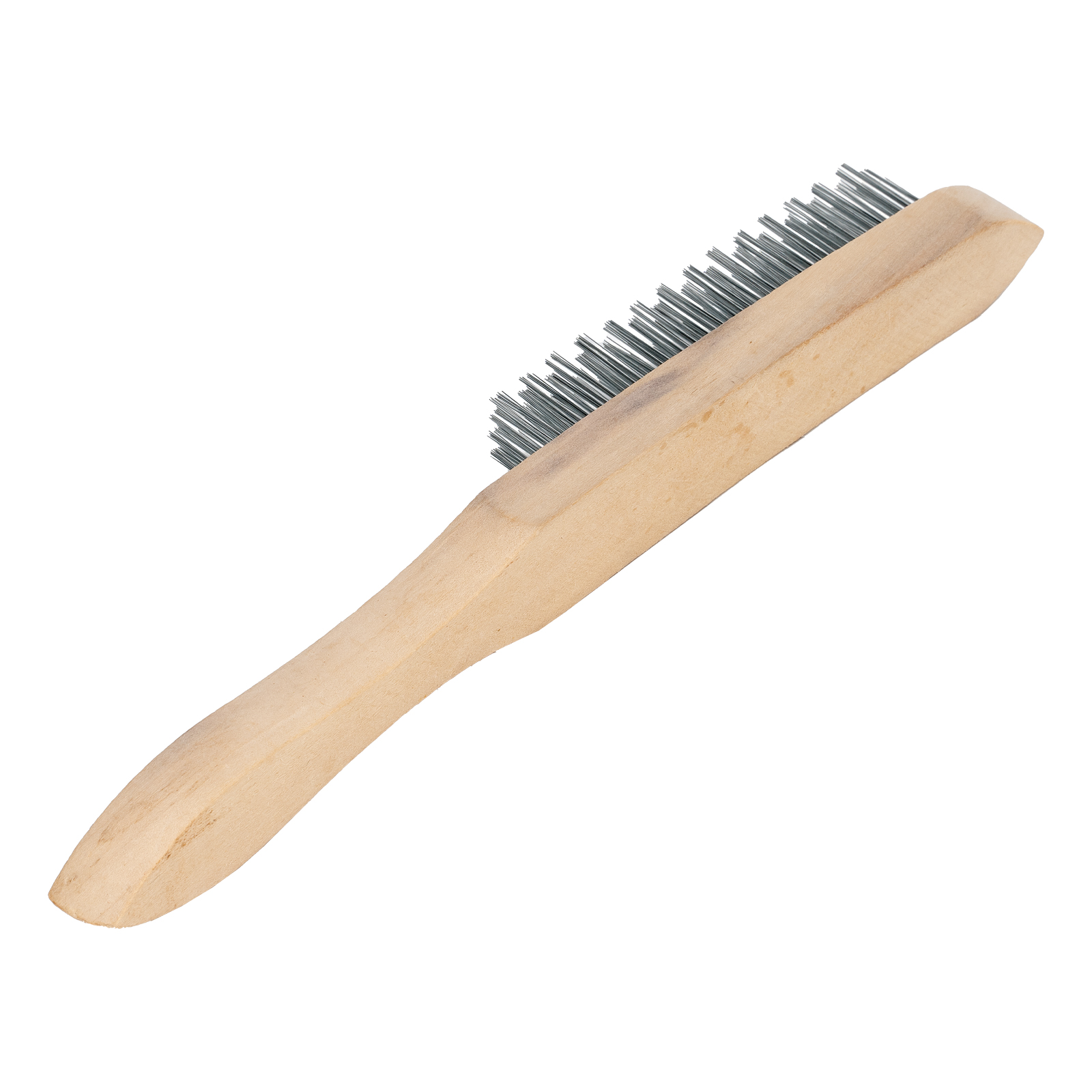 Металлическая четырехрядная щетка Sparta 748225 с деревянной ручкой — инструмент для ручного удаления ржавчины, грязи, остатков краски с металлических, деревянных и других поверхностей. Четырехрядная щетина обеспечивает качественную обработку. Щеткой пользуются строители, ремонтники, специалисты по кузовному ремонту, пригодится она и в быту.