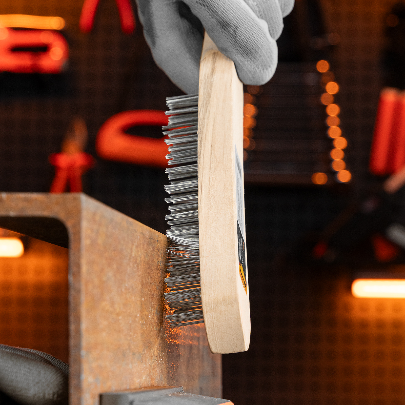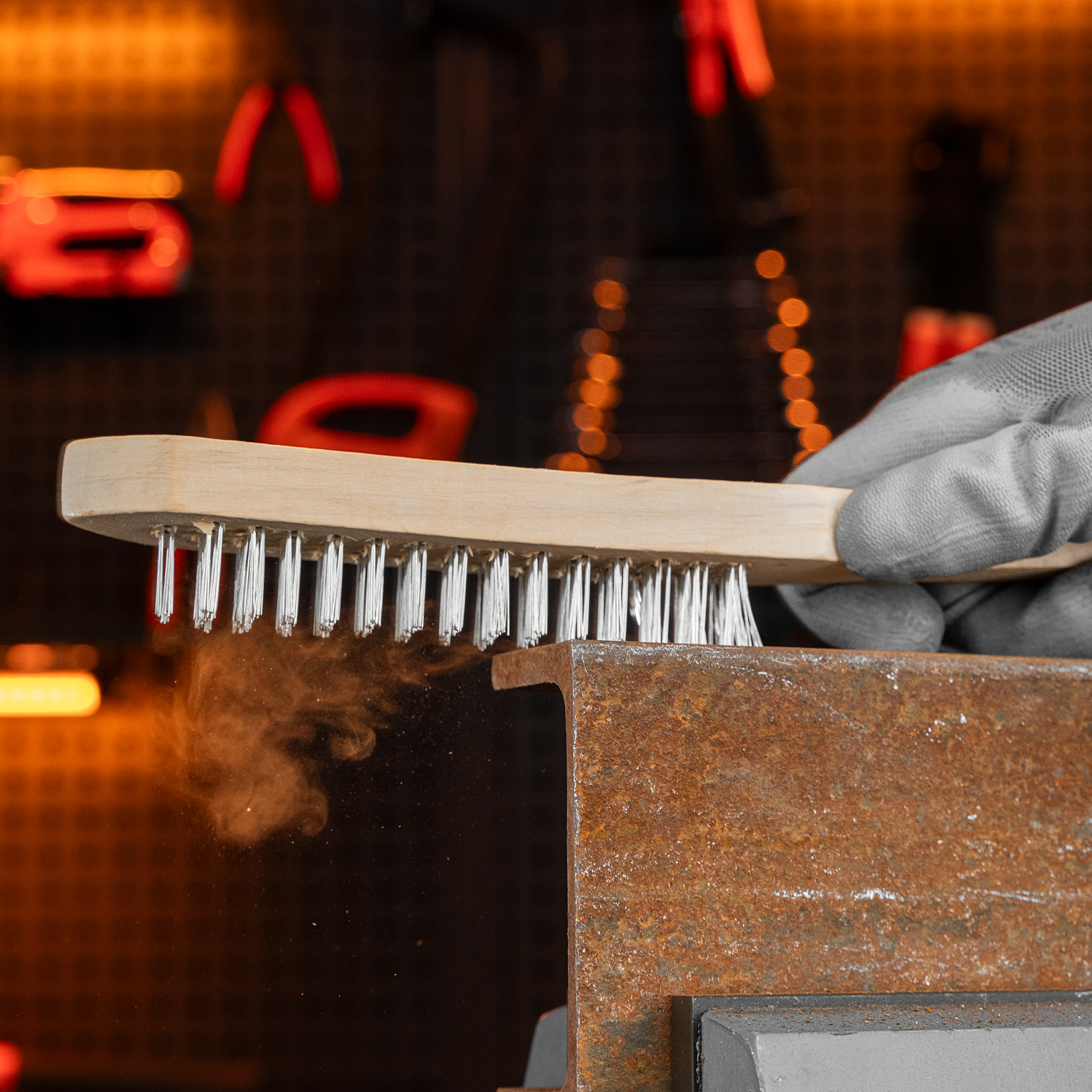 - Износостойкость — щетина из высококачественной стальной проволоки выдерживает интенсивное применение.