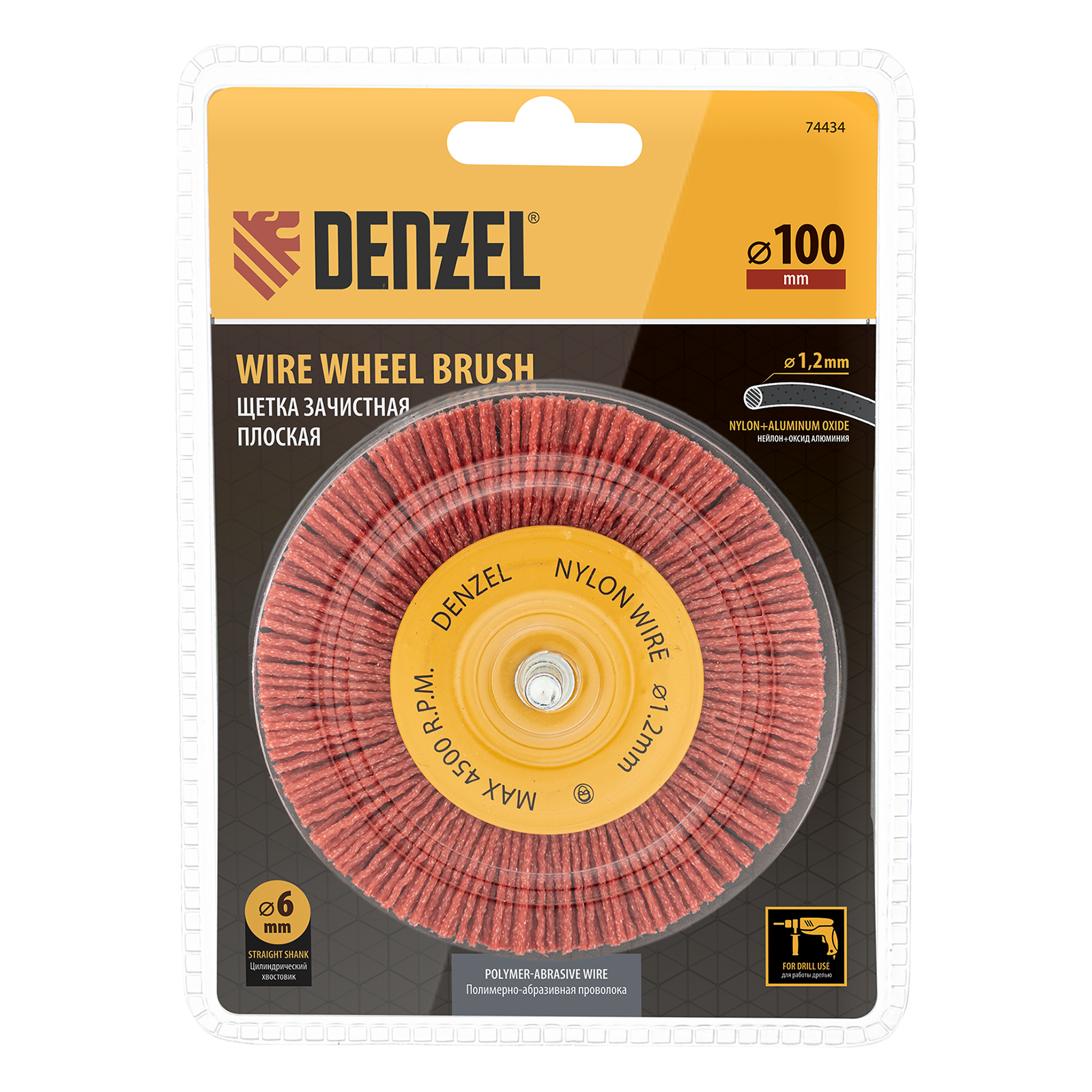 Щетка для дрели, 100 мм, Плоская, со шпилькой, нейлоновая щетина Denzel в Челябинске