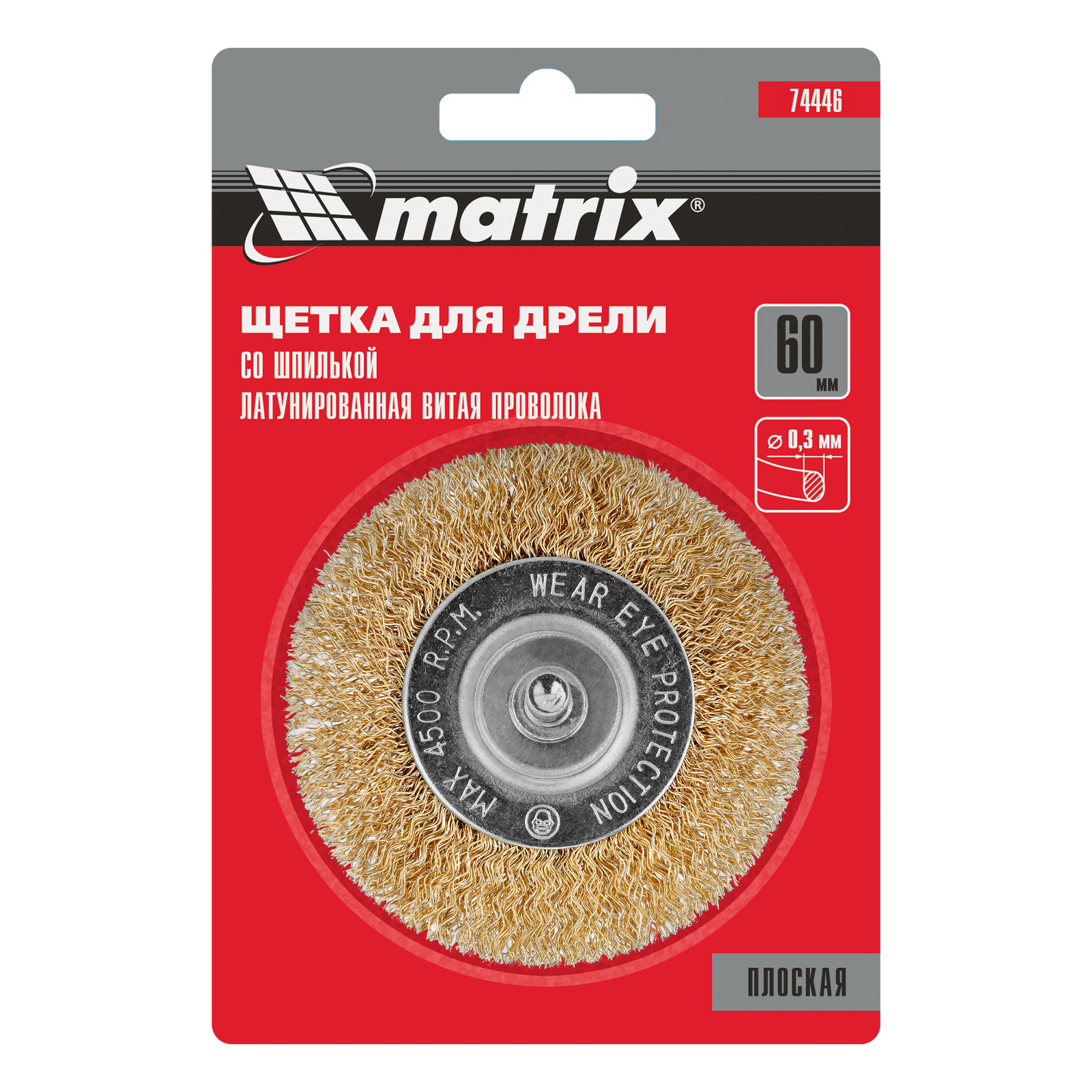 Щетка для дрели, 60 мм, плоская со шпилькой, латунированная витая проволока Matrix в Челябинске