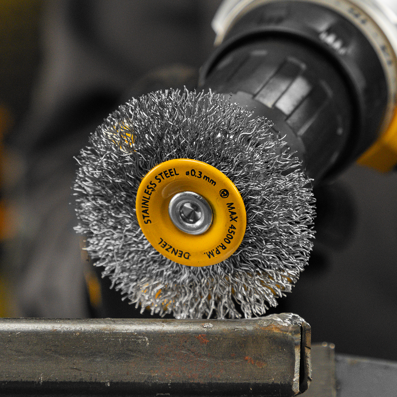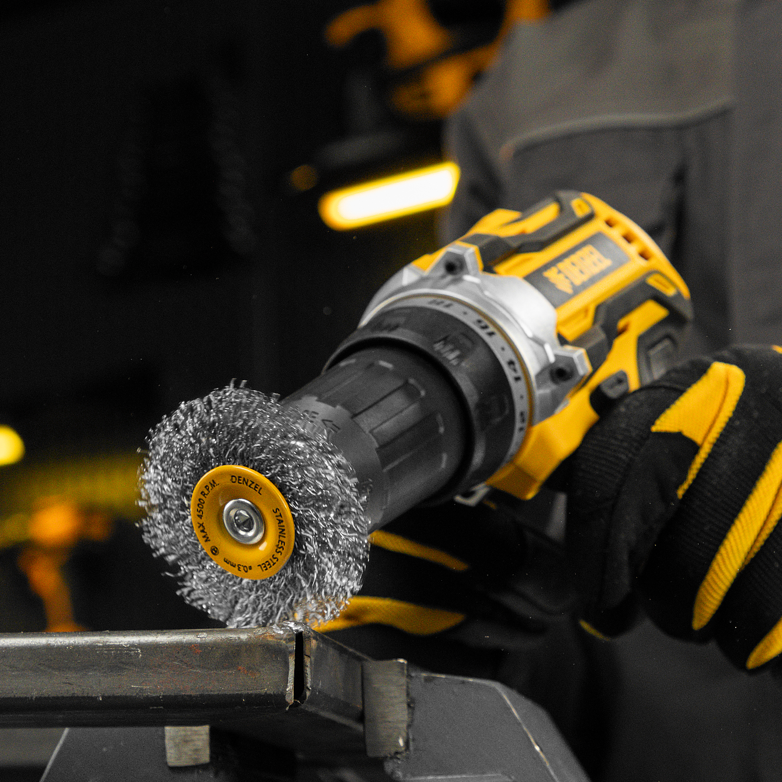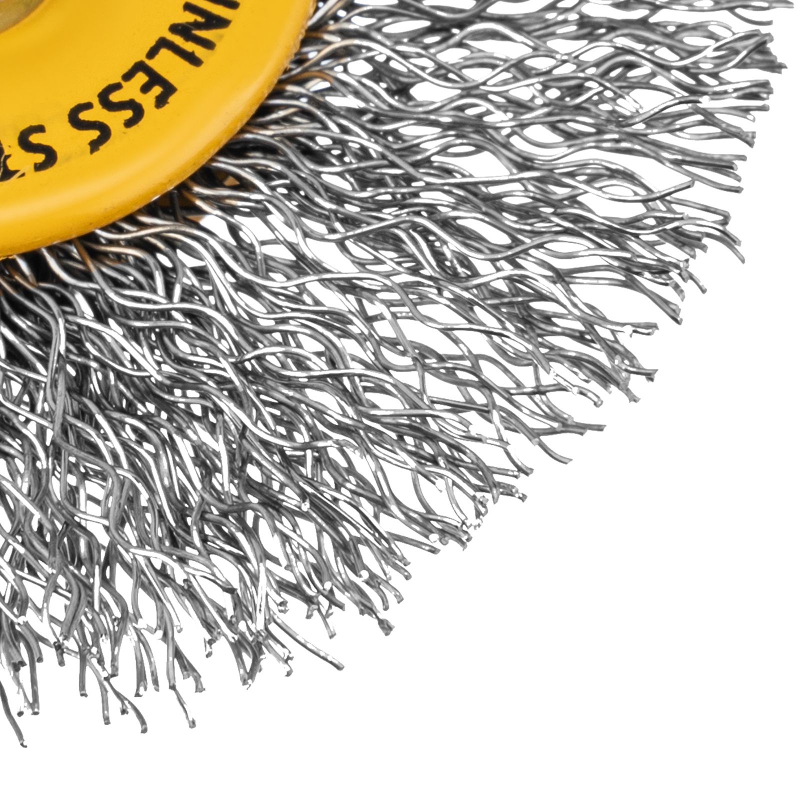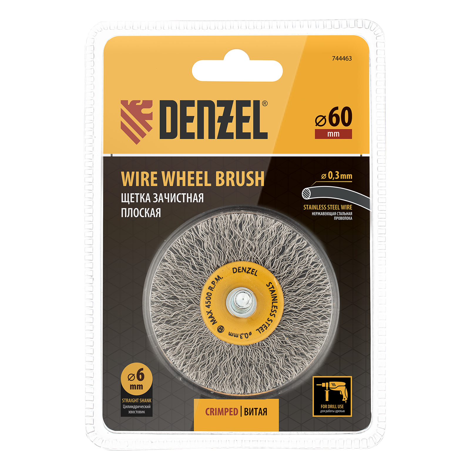 Щетка для дрели, 60 мм, Плоская, со шпилькой, нержавеющая витая проволока Denzel в Челябинске