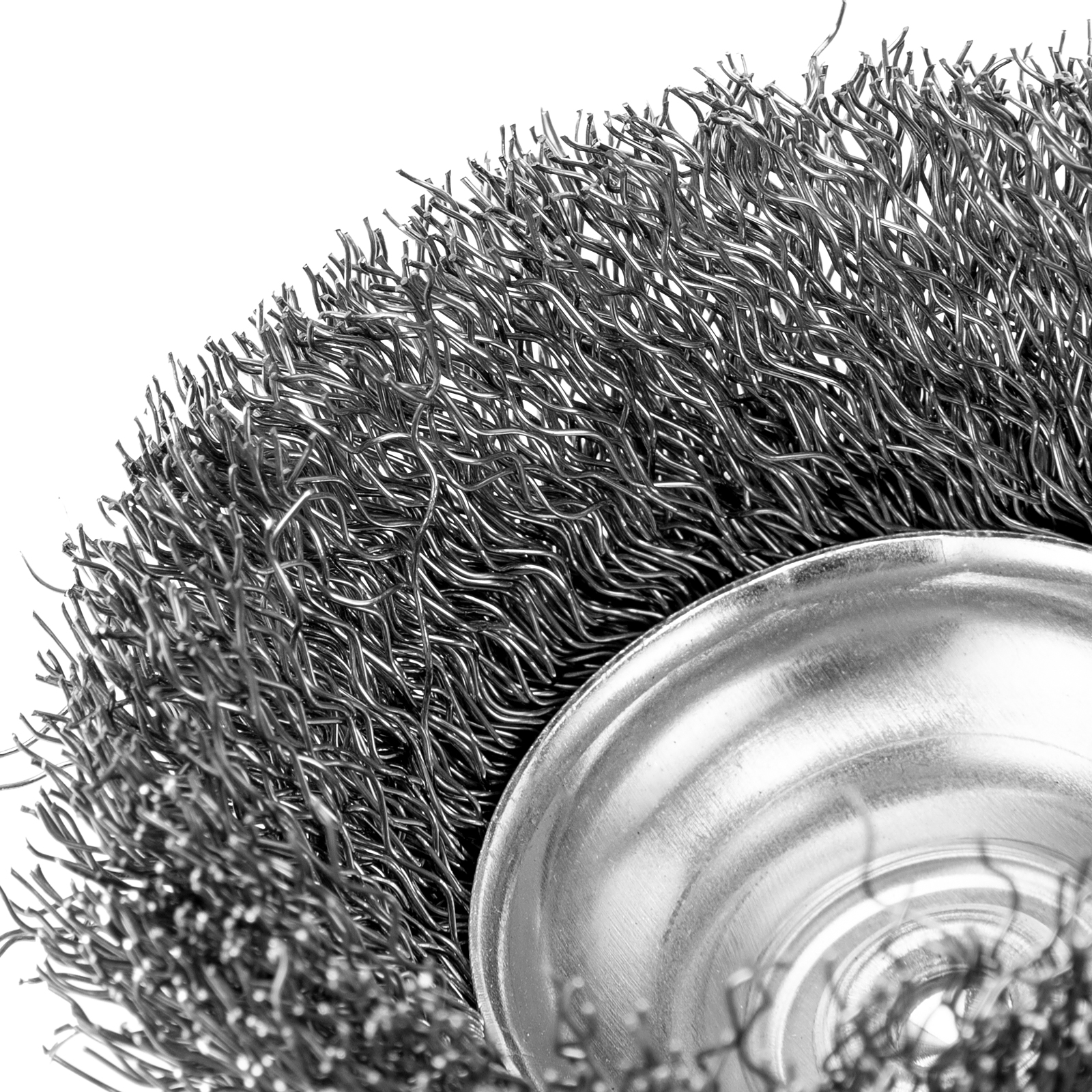 - Высокая производительность — щетка имеет форму чашки, что увеличивает площадь прилегания щетины к обрабатываемой поверхности.