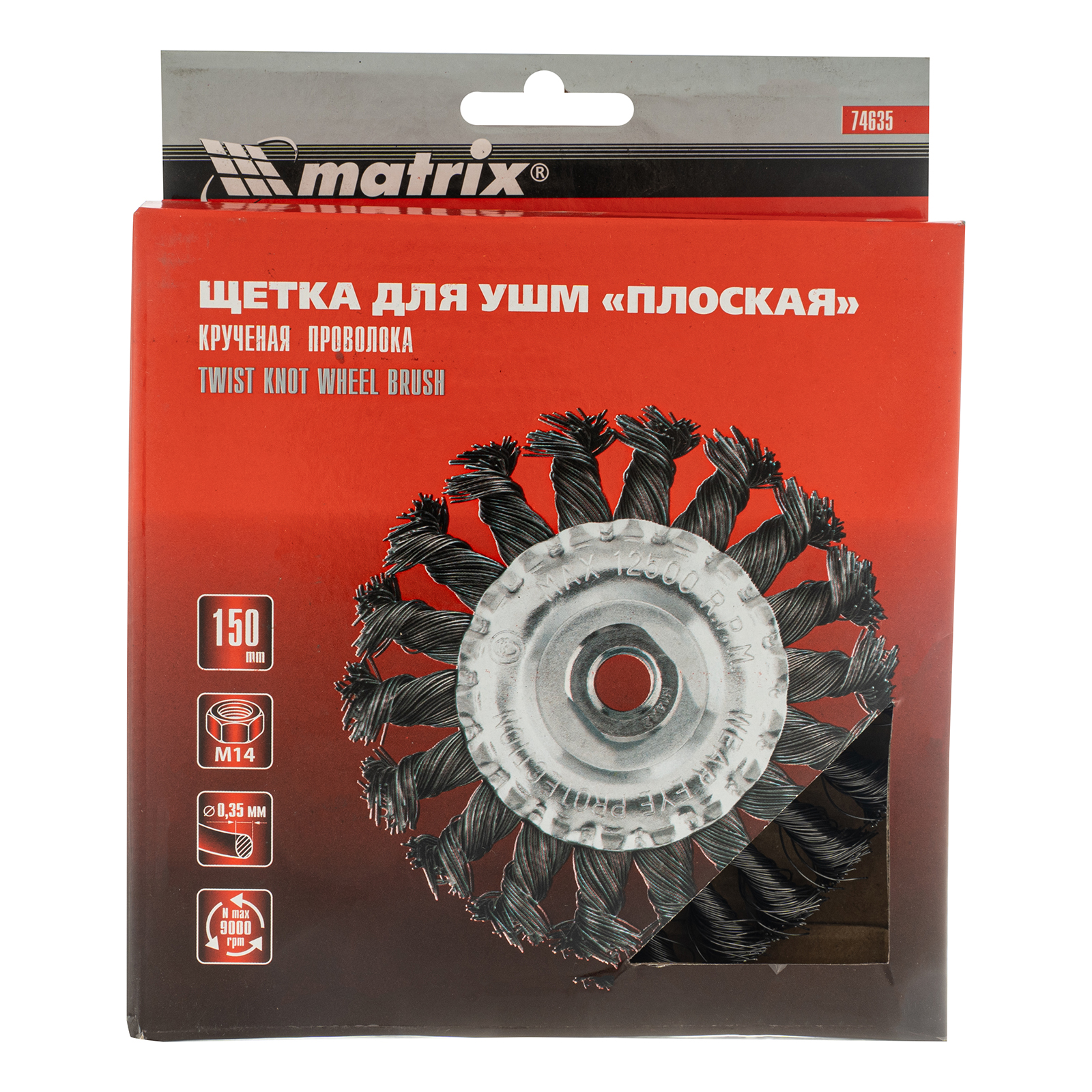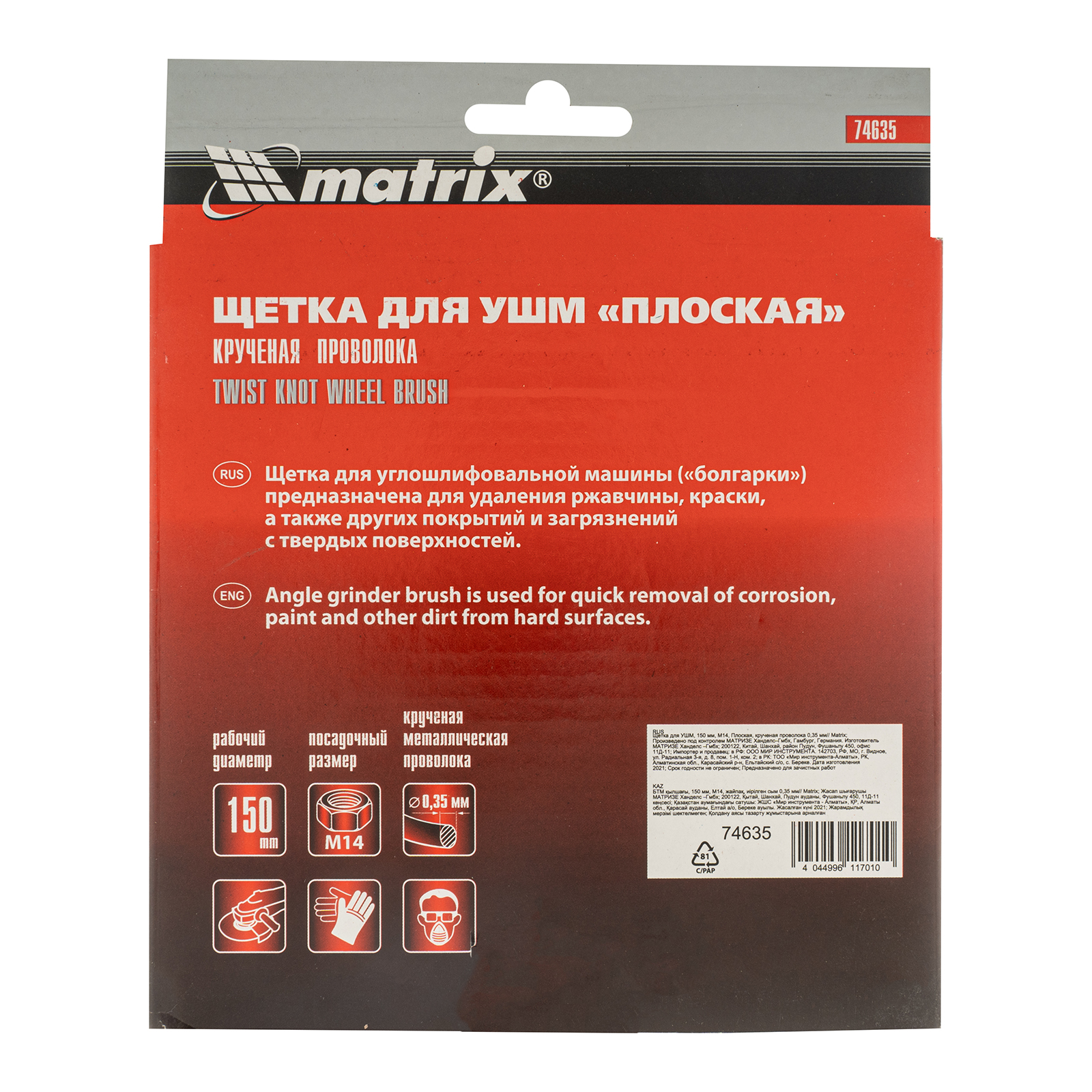 Щетка для УШМ 150 мм, М14, плоская, крученая проволока 0.35 мм Matrix в Челябинске