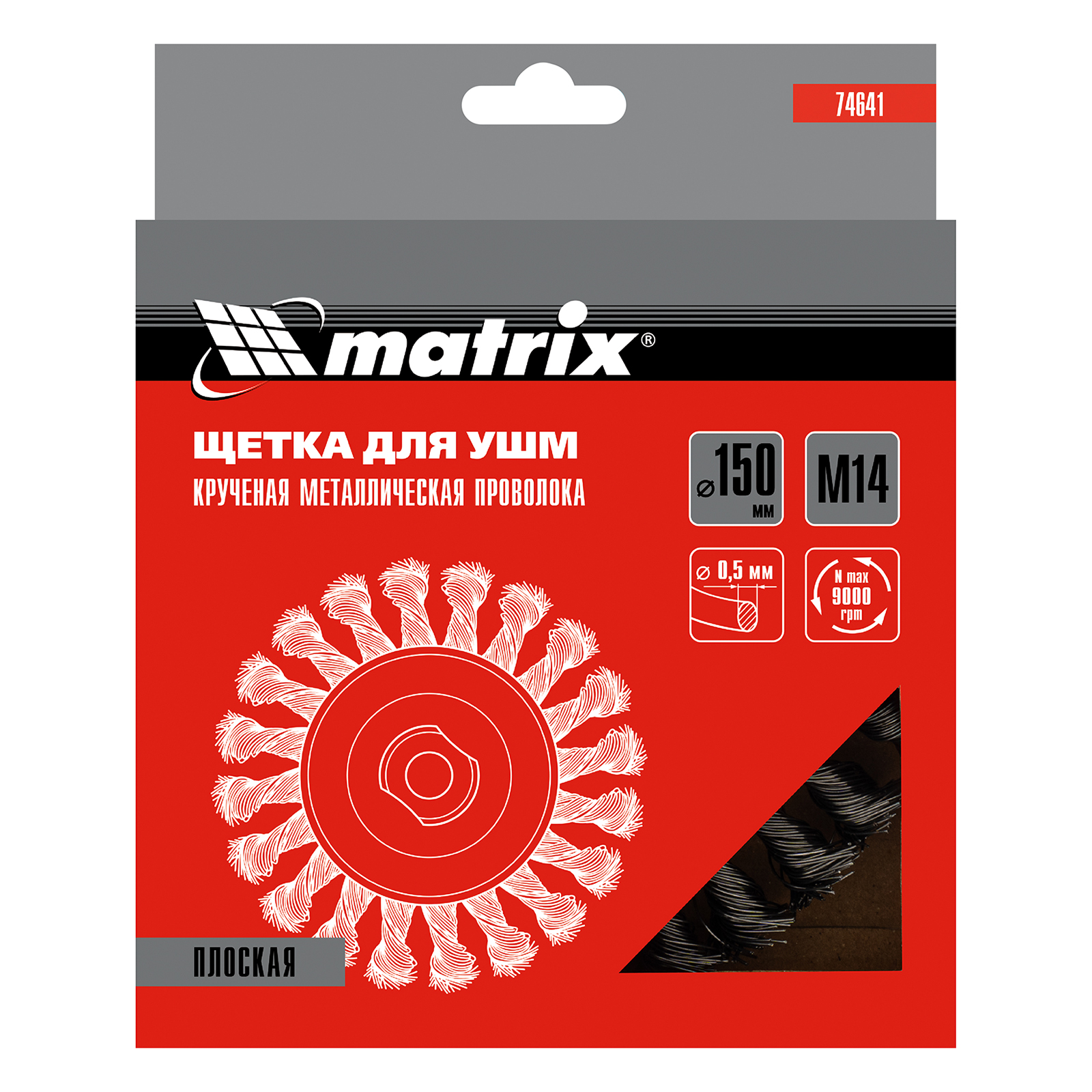 Щетка для УШМ 150 мм, М14, плоская, крученая проволока 0.5 мм Matrix в Челябинске