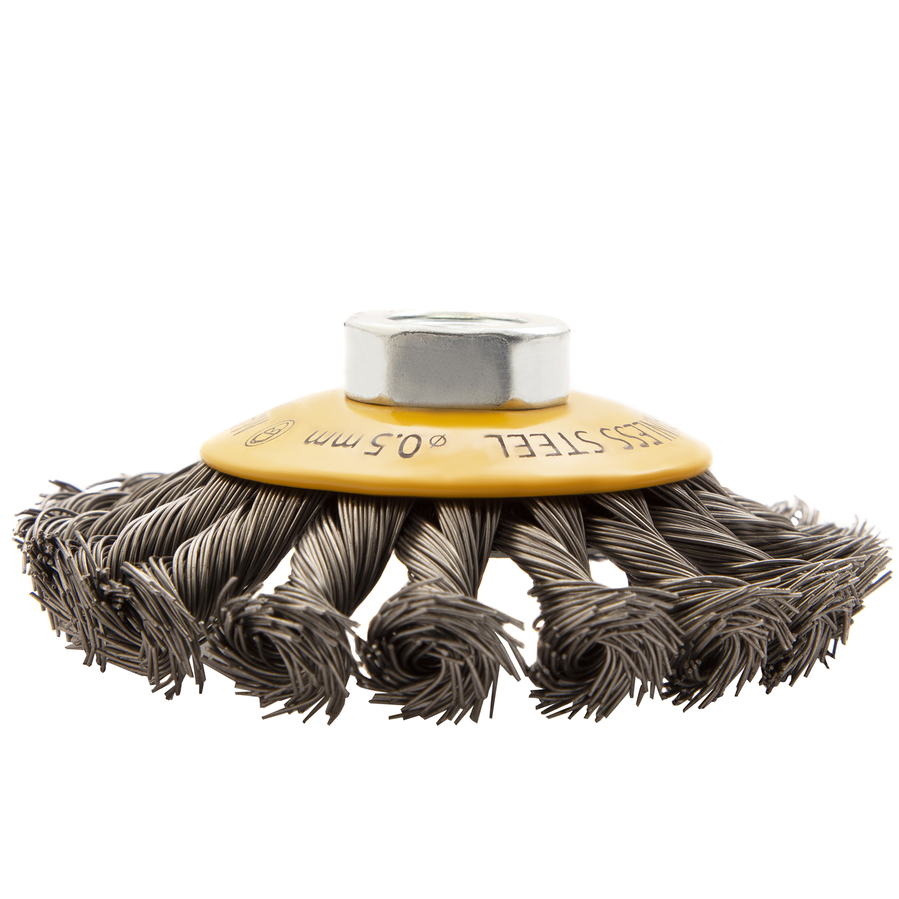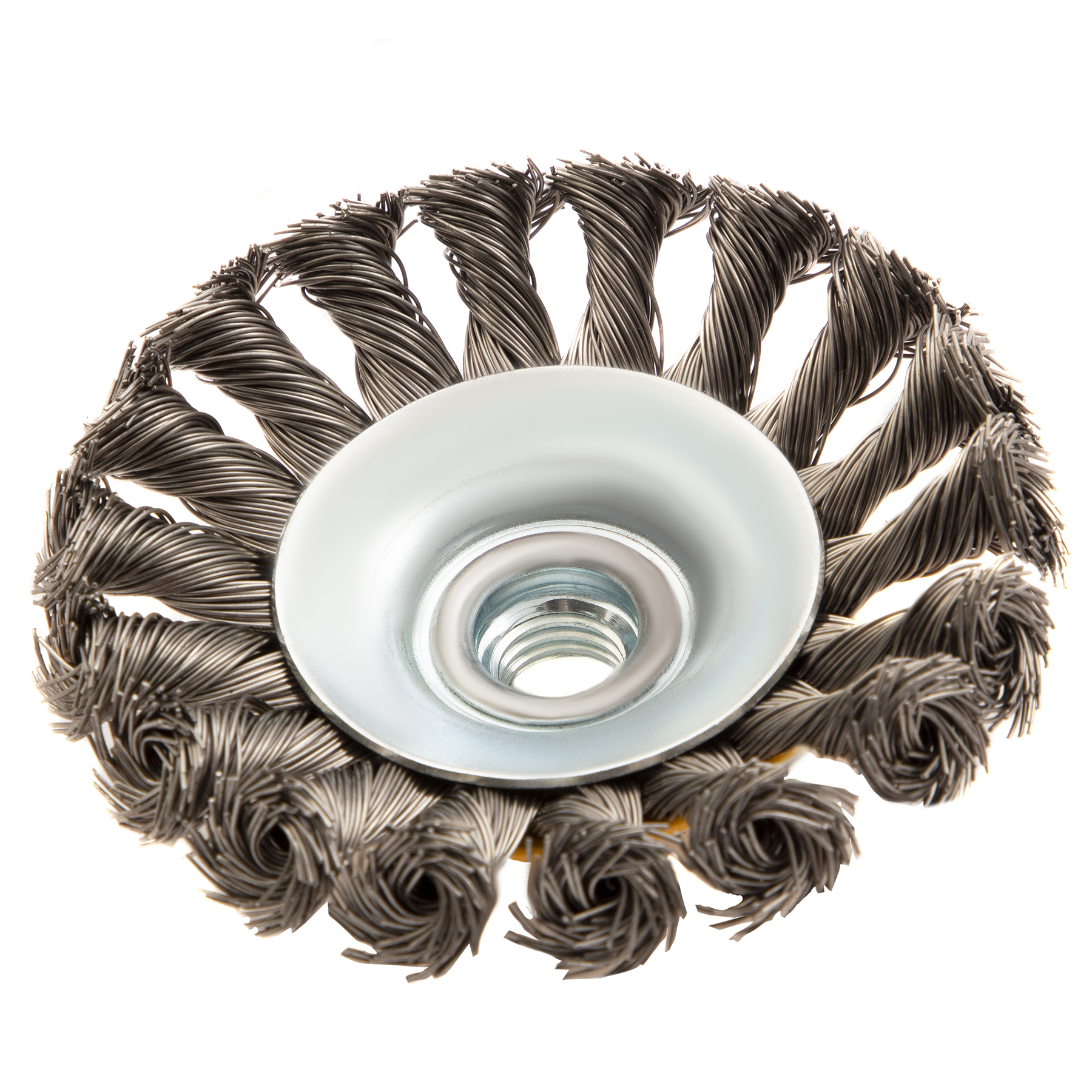 Щетка для УШМ, 100 мм, "Тарелка", крученая нержавеющая проволока 0.5 мм, М14 Denzel в Челябинске